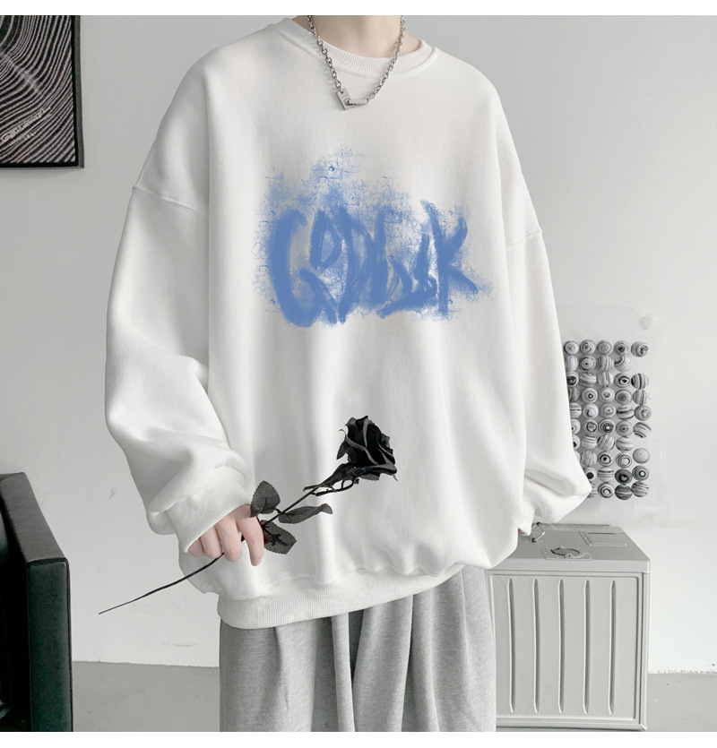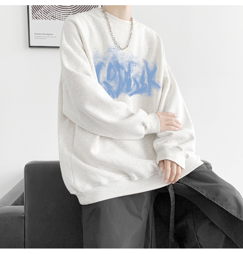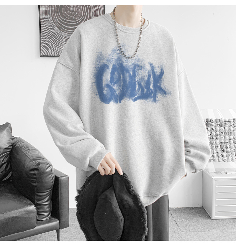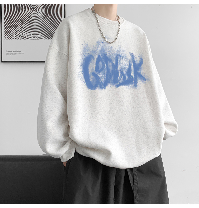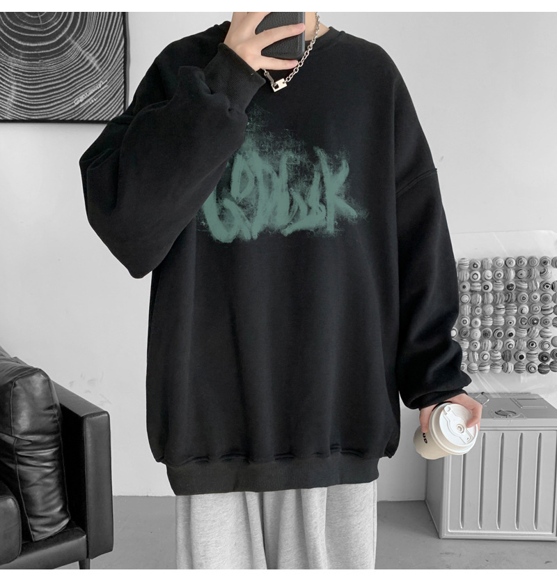 트렌디 한 브랜드 스웨트 셔츠 남성 봄과 가을 겨울 패션 잘 생긴 바이브 기모 긴 소매 한국 느슨한 남성 캐주얼 티셔츠스토어 가기