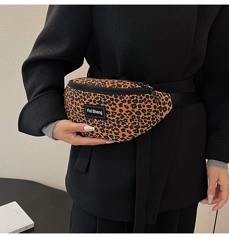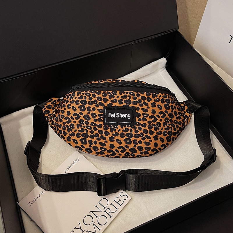 2024 새로운 여름 유행 쿨 레오파드 패턴 여성의 허리 가방 거리 캐주얼 가슴 가방 독특한 트렌디 멀티 포켓 크로스 바디 백스토어 가기
