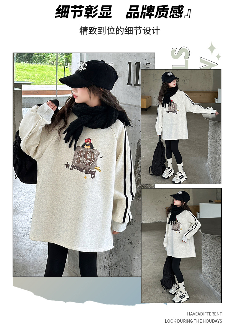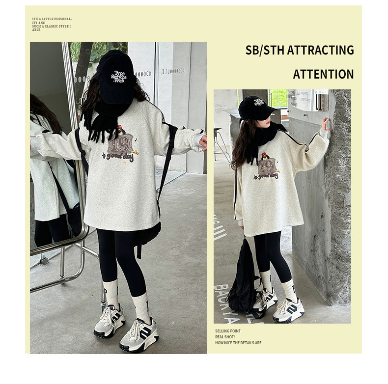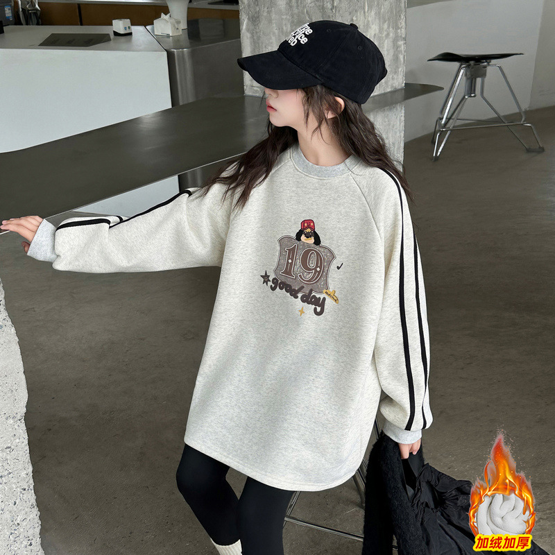 소녀 가을 겨울 옷 기모 베이스 셔츠 2024 새로운 여성 대형 어린이 원피스 벨벳 중형 및 긴 스웨터 내부 티셔츠스토어 가기