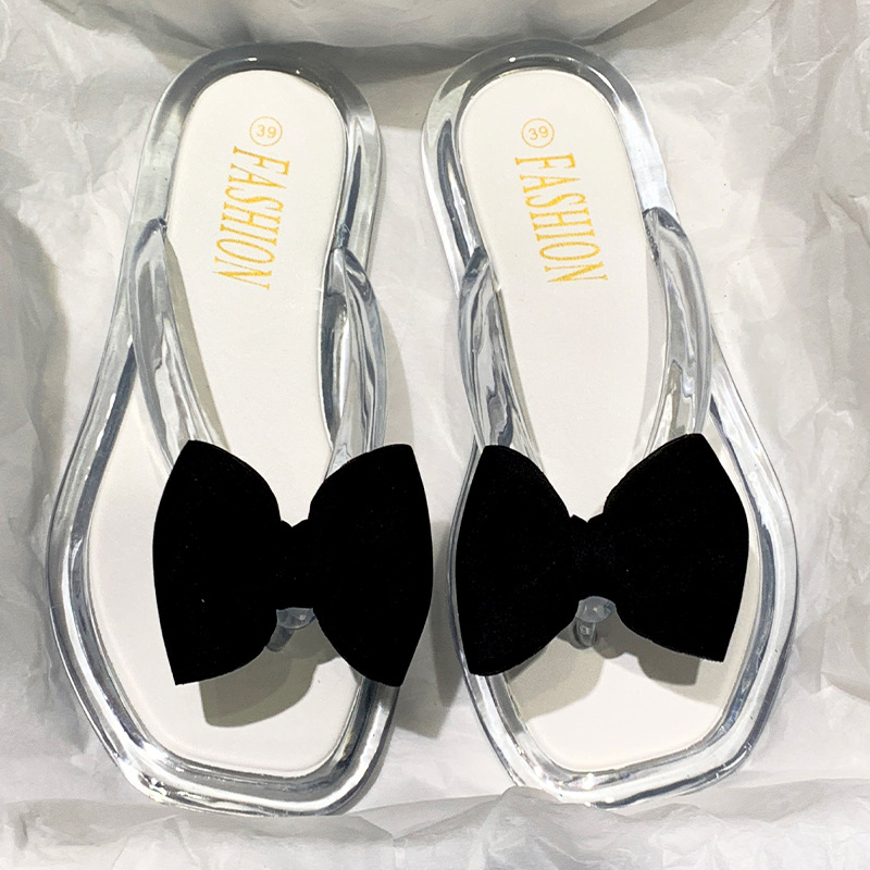국경을 넘는 신상 젤리 크리스탈 슬리퍼 여성용 리본 패션 만능 한국 스타일 ins 미끄럼 방지 내마모성 해변용