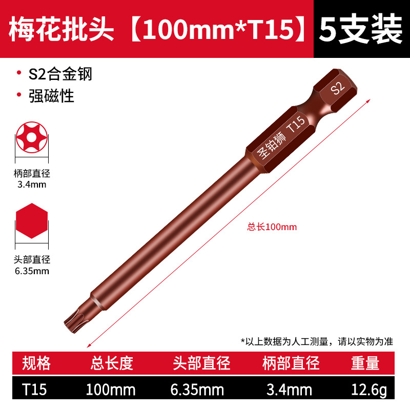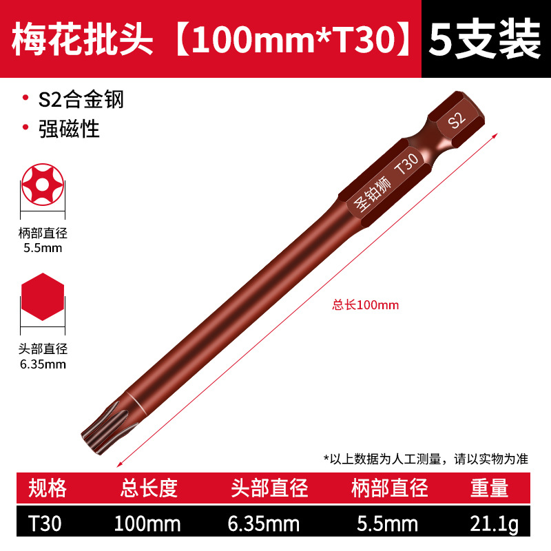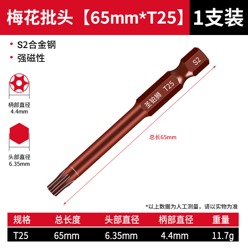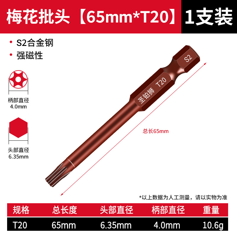 매화 머리 육각형 전기 핸드 드릴 스크루 드라이버 중공 S2 미터 세트 t20t25t30 케이프