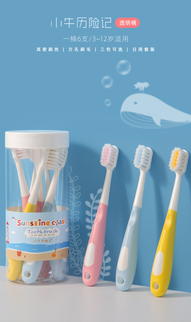 양주 매버릭스 모험 어린이 칫솔 도매 스퀘어 홀 짙은 머리 부드러운 머리 칫솔 3-12 년 된 배럴 6스토어 가기