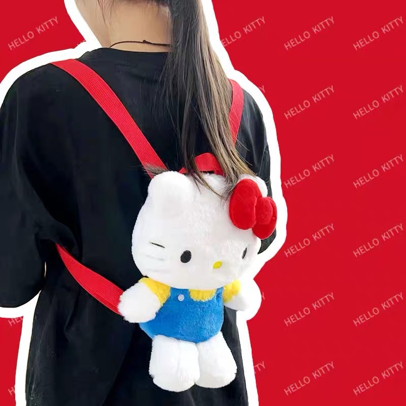 헬로 키티 백팩 인형 가방 봉제 배낭 인형 가방 2024 새로운 여성의 가을과 겨울 귀여운 헬로 키티스토어 가기