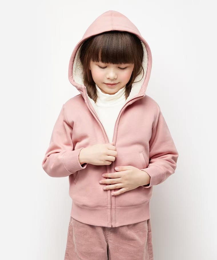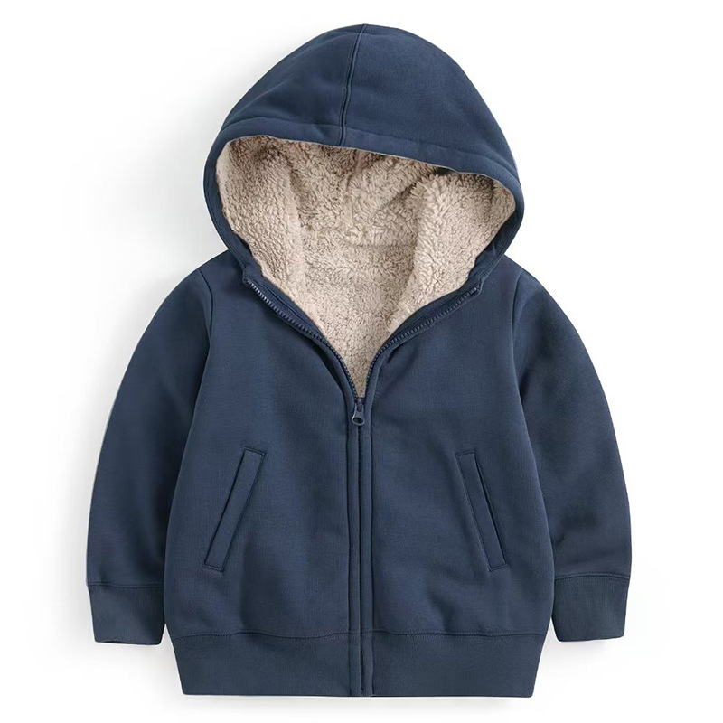 어린이 두꺼운 따뜻한 재킷 가을과 겨울 어린이 기모 두꺼운 따뜻한 재킷 양가죽 단색 탑 후드
