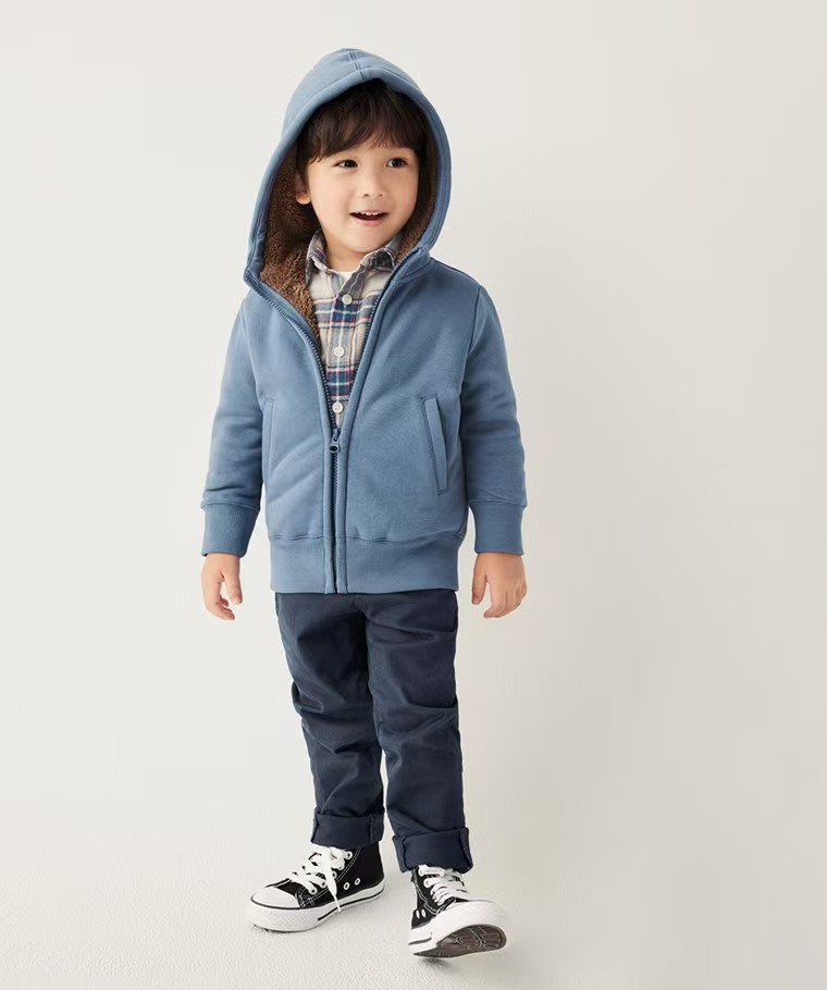 어린이 두꺼운 따뜻한 재킷 가을과 겨울 어린이 기모 두꺼운 따뜻한 재킷 양가죽 단색 탑 후드스토어 가기
