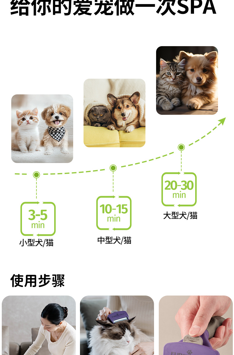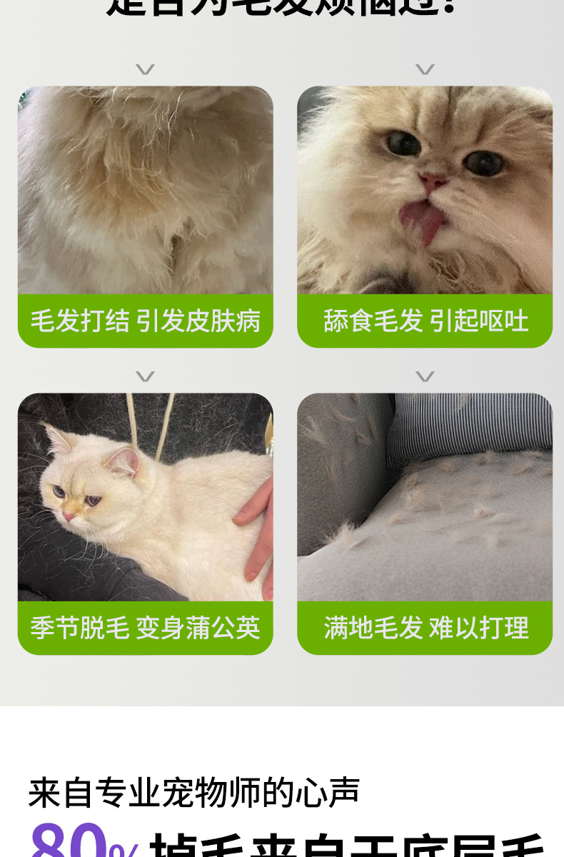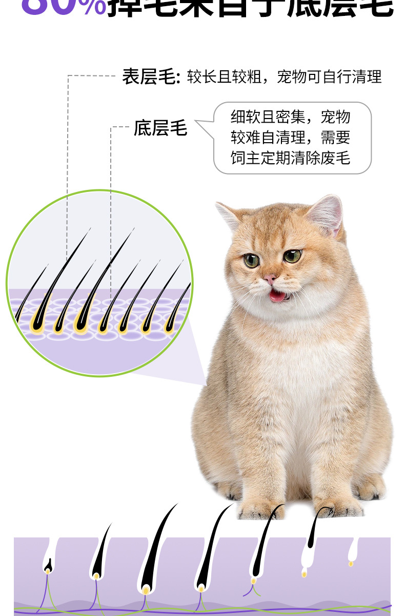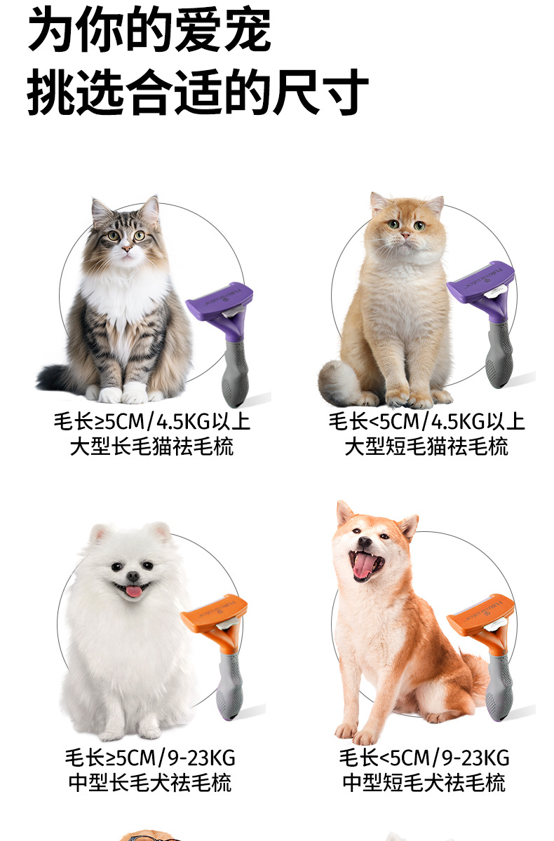 • 4.5KG 이하의 작은 단발 고양이 제모 빗
