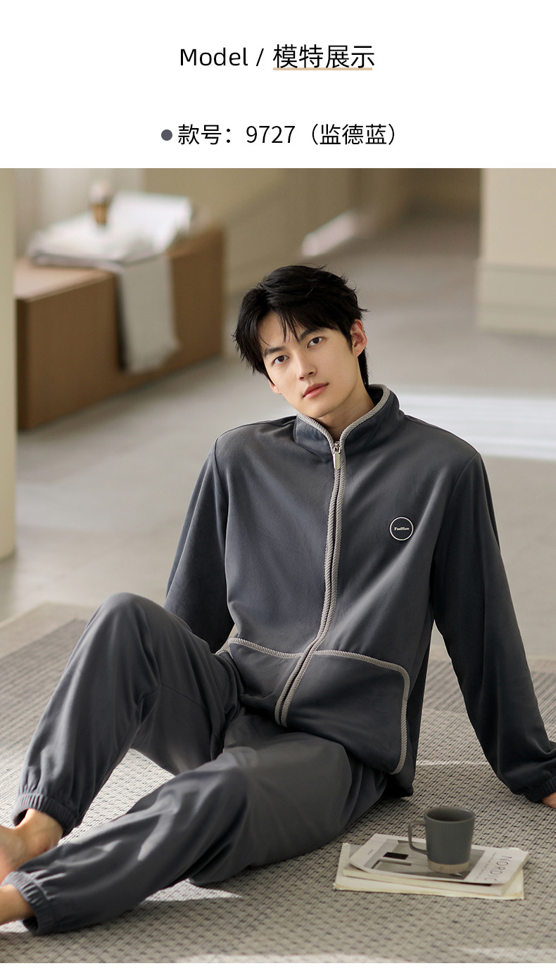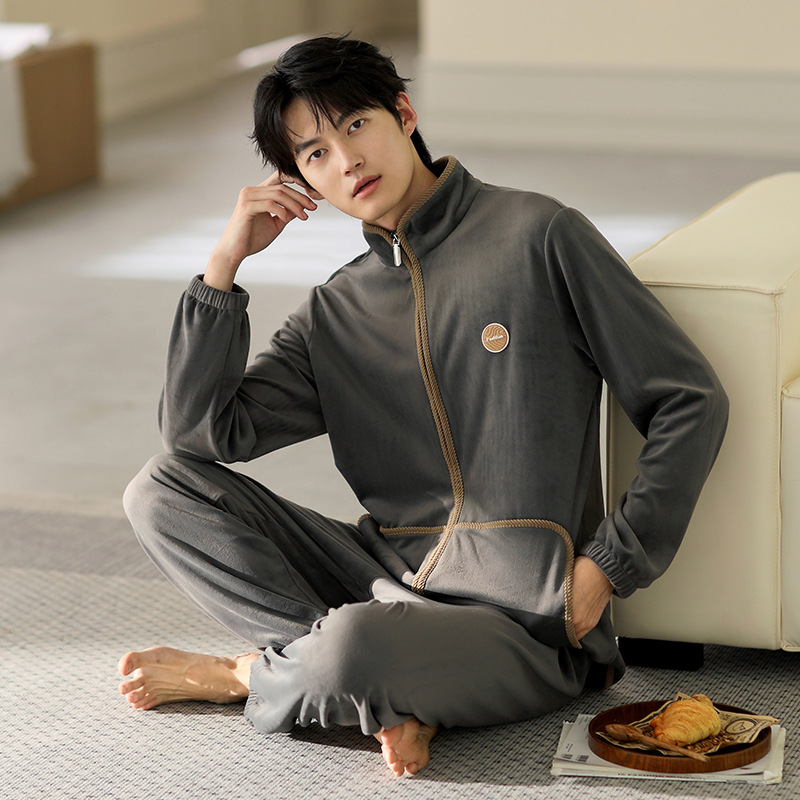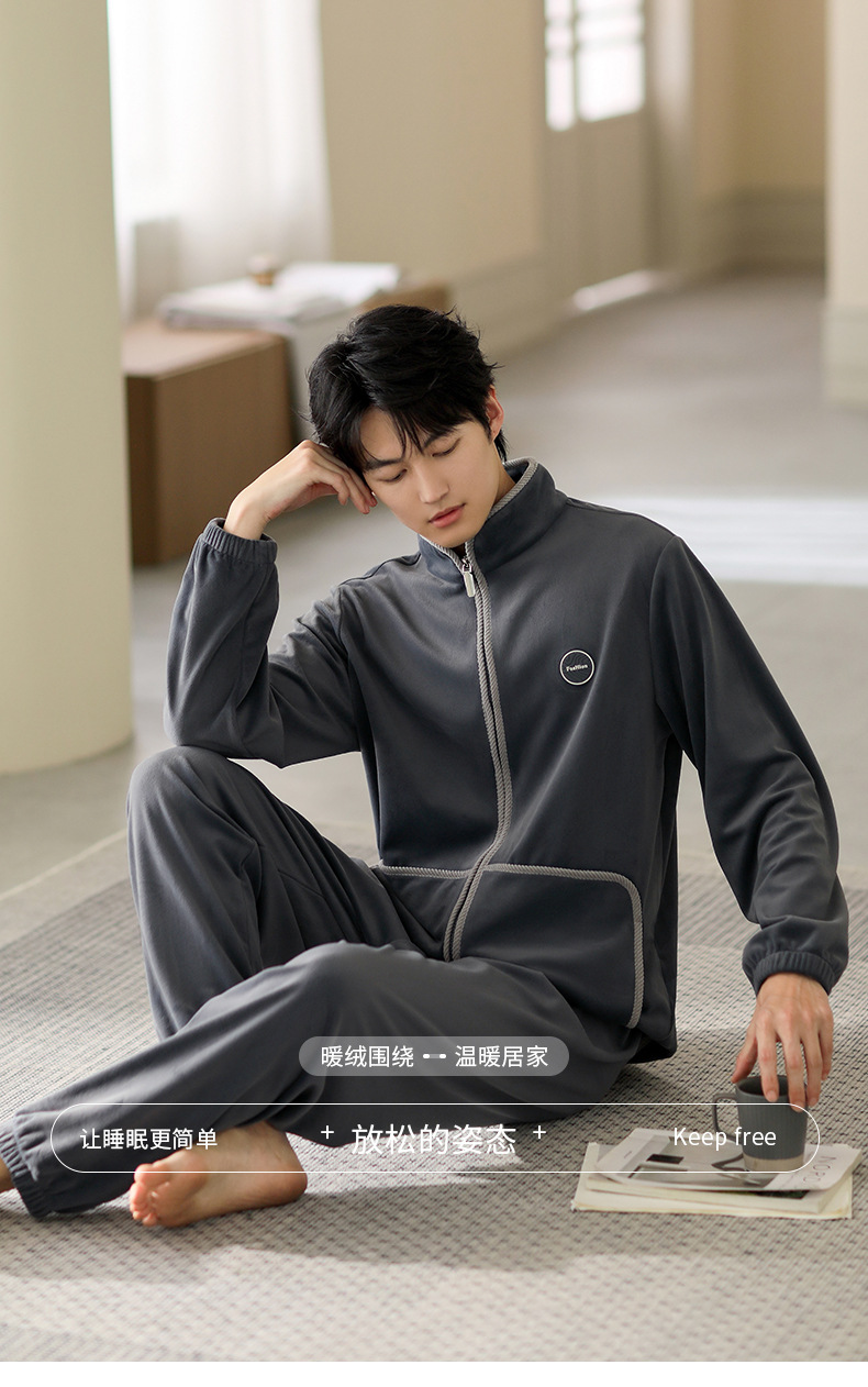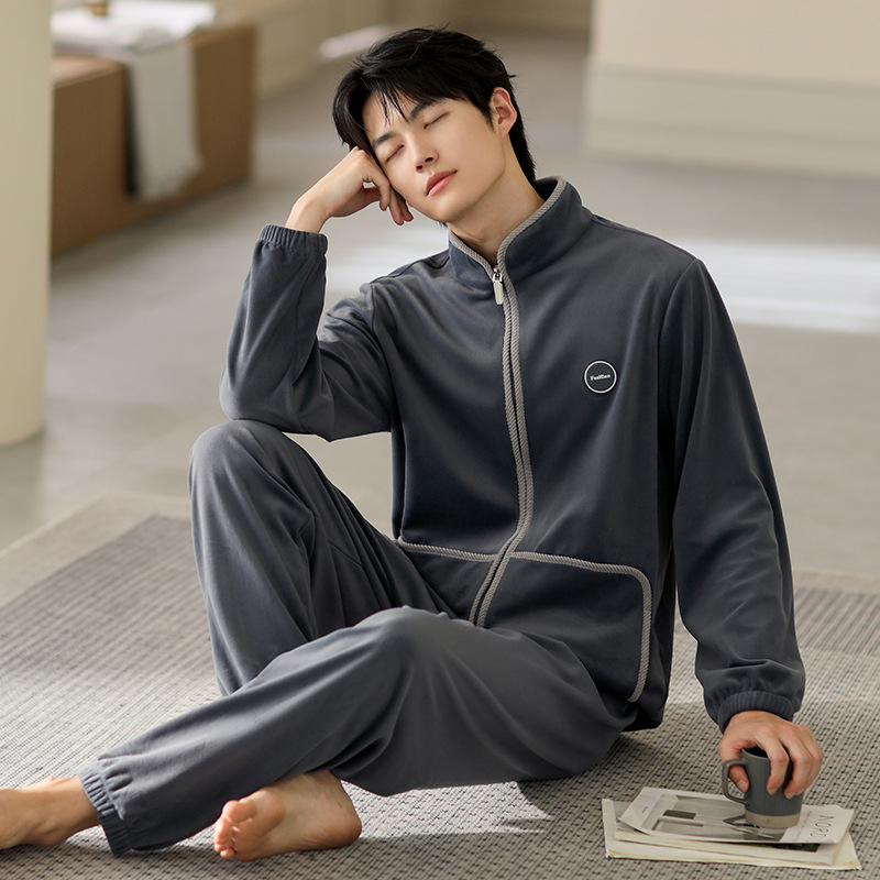 잠옷 남자의 가을과 겨울 두꺼운 섬 벨벳 홈 옷 겨울 따뜻한 기모 산호 벨벳 지퍼 세트스토어 가기