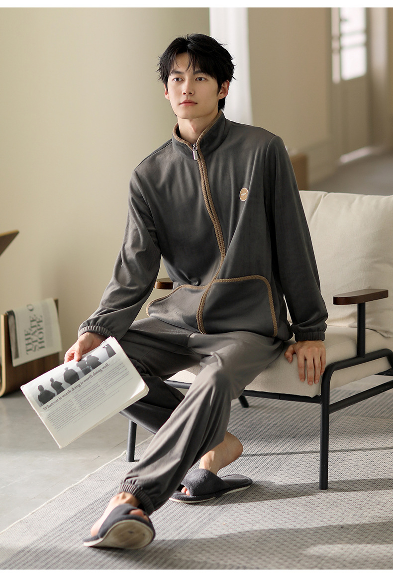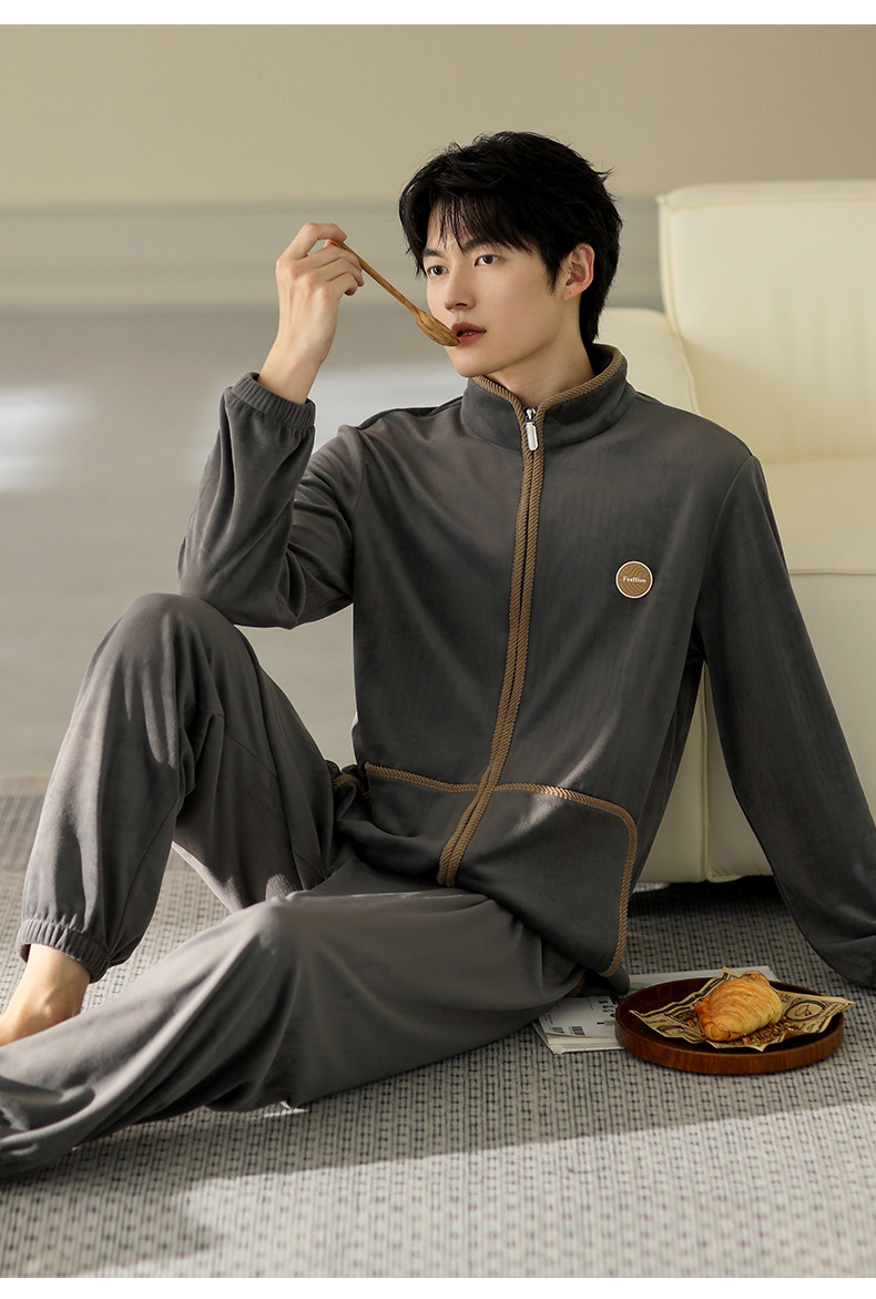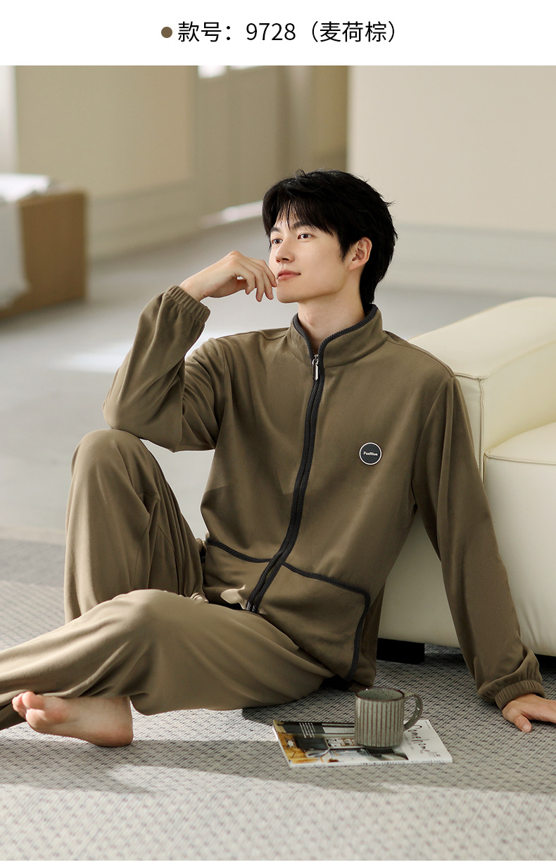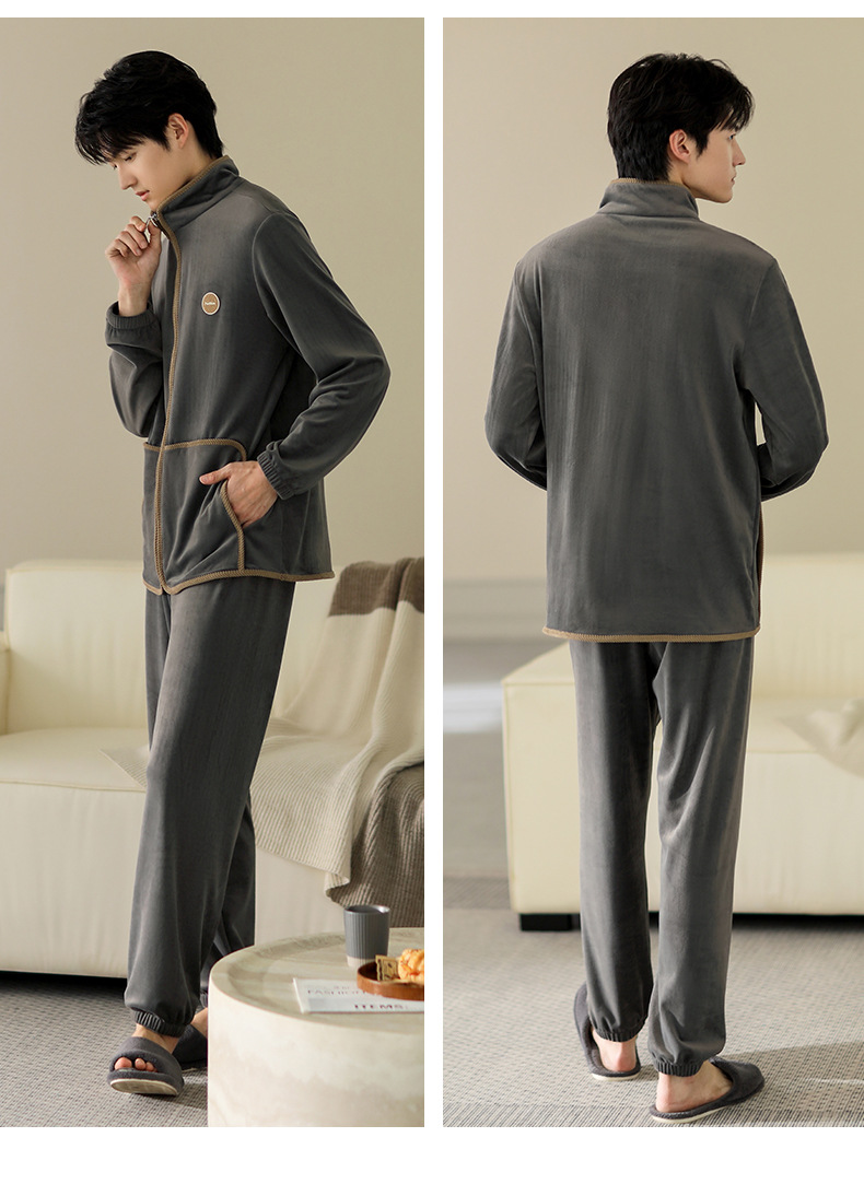 잠옷 남자의 가을과 겨울 두꺼운 섬 벨벳 홈 옷 겨울 따뜻한 기모 산호 벨벳 지퍼 세트스토어 가기