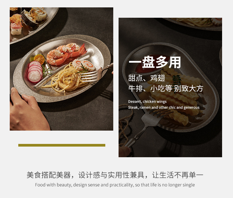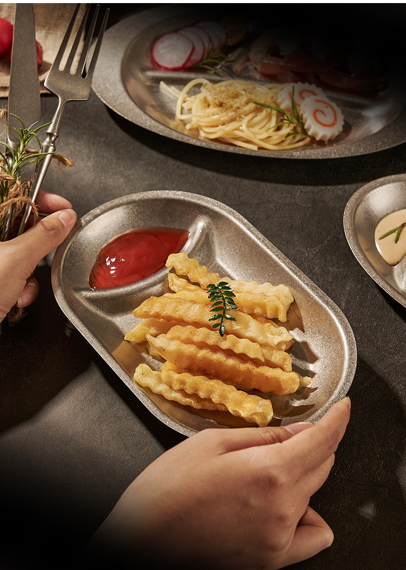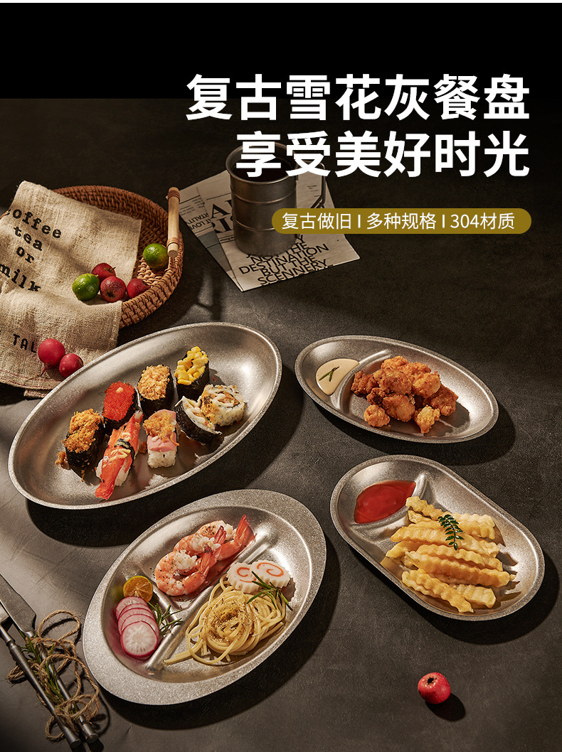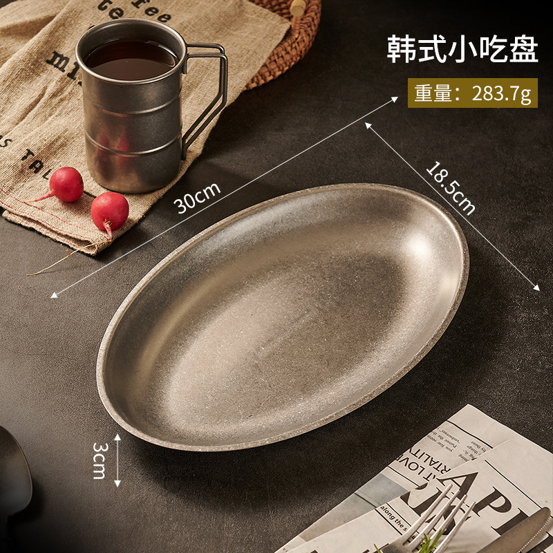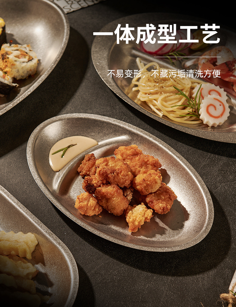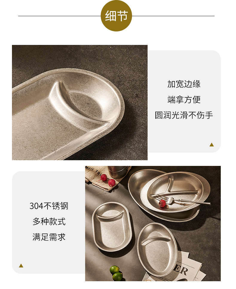 304 스테인리스 레트로 스타일 가정용 분할 타원형 접시 라이트 럭셔리 무광 스타일 야외 식사 접시 바베큐 접시 맞춤 제작스토어 가기