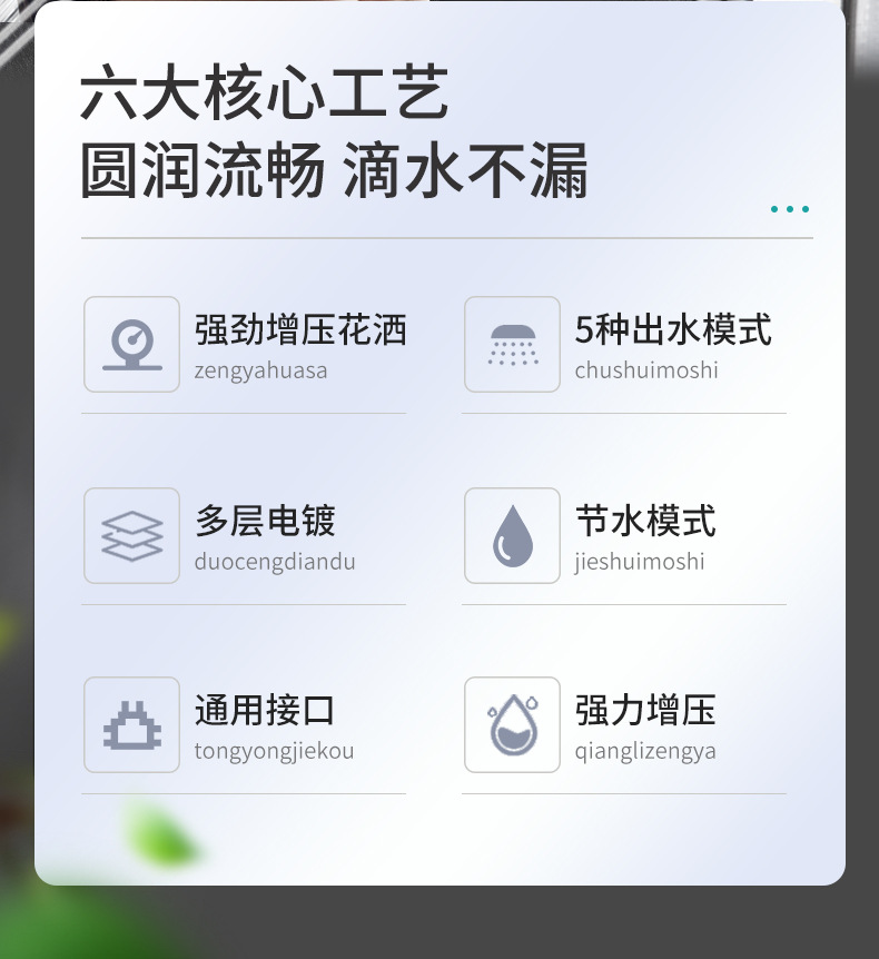 • 새로운 5단 대형 물 배출 샤워 + 1.5m 호스