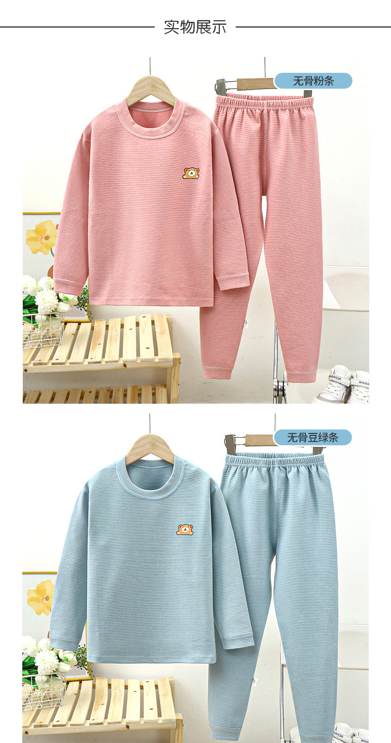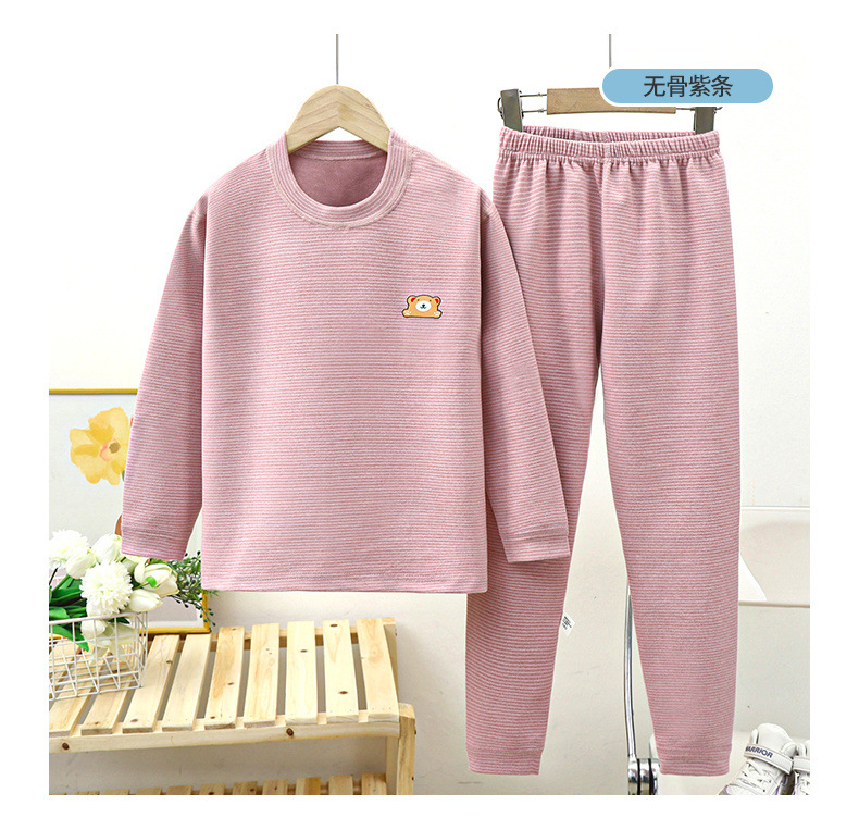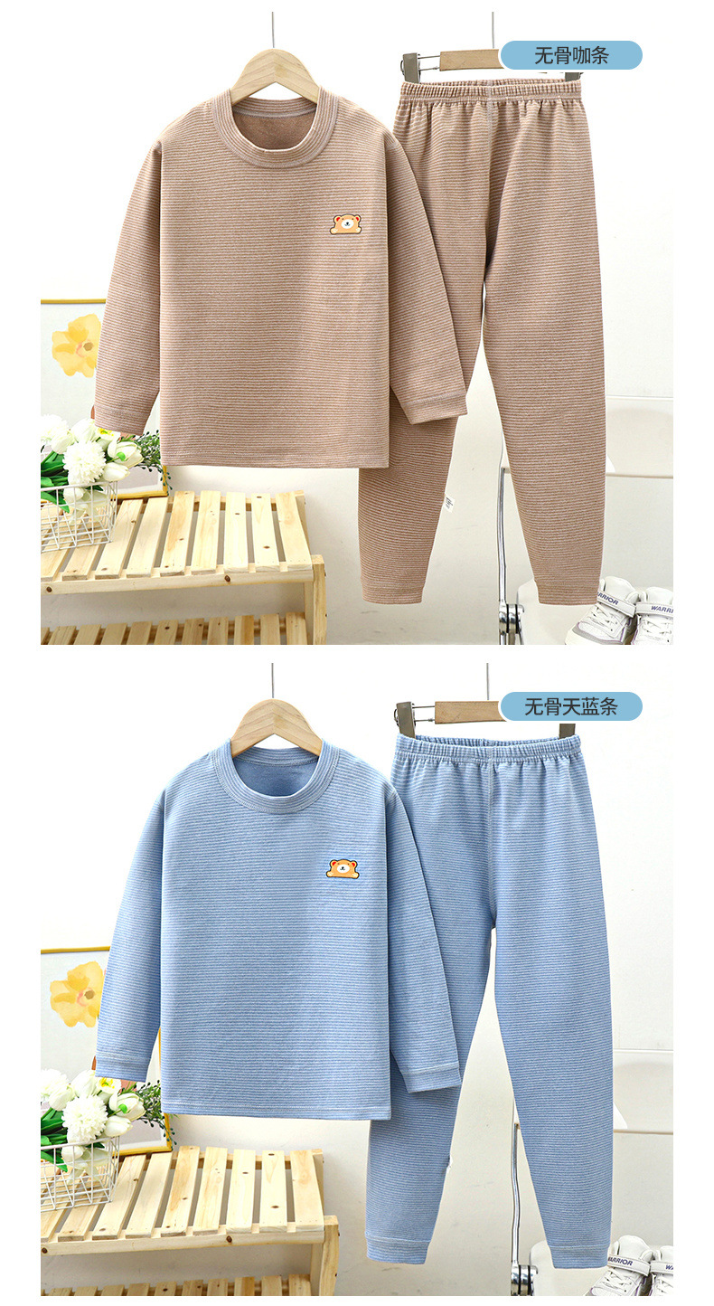 어린이 뼈없는 벨벳 중고 칼라 새 가을 옷과 바지 세트 남녀 줄무늬 두꺼운 열 속옷 세트스토어 가기