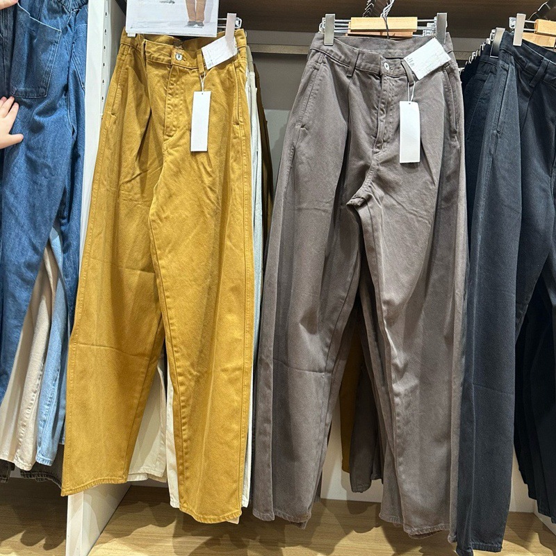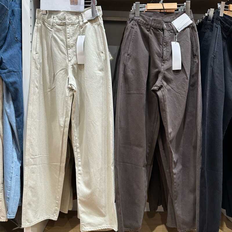 가을 여성 의류 컬러 데님 스타일 주름 바지 세척 제품 와이드 센스 바지 청바지 E471631스토어 가기
