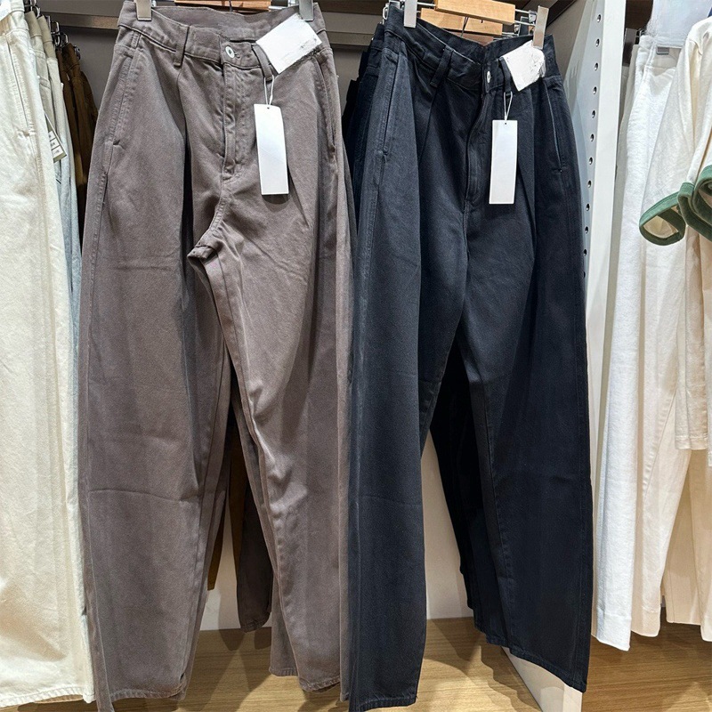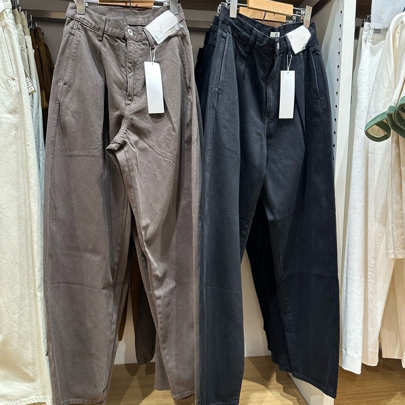 가을 여성 의류 컬러 데님 스타일 주름 바지 세척 제품 와이드 센스 바지 청바지 E471631