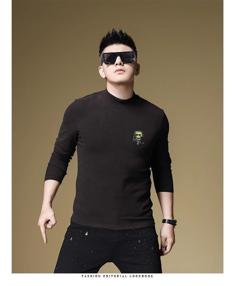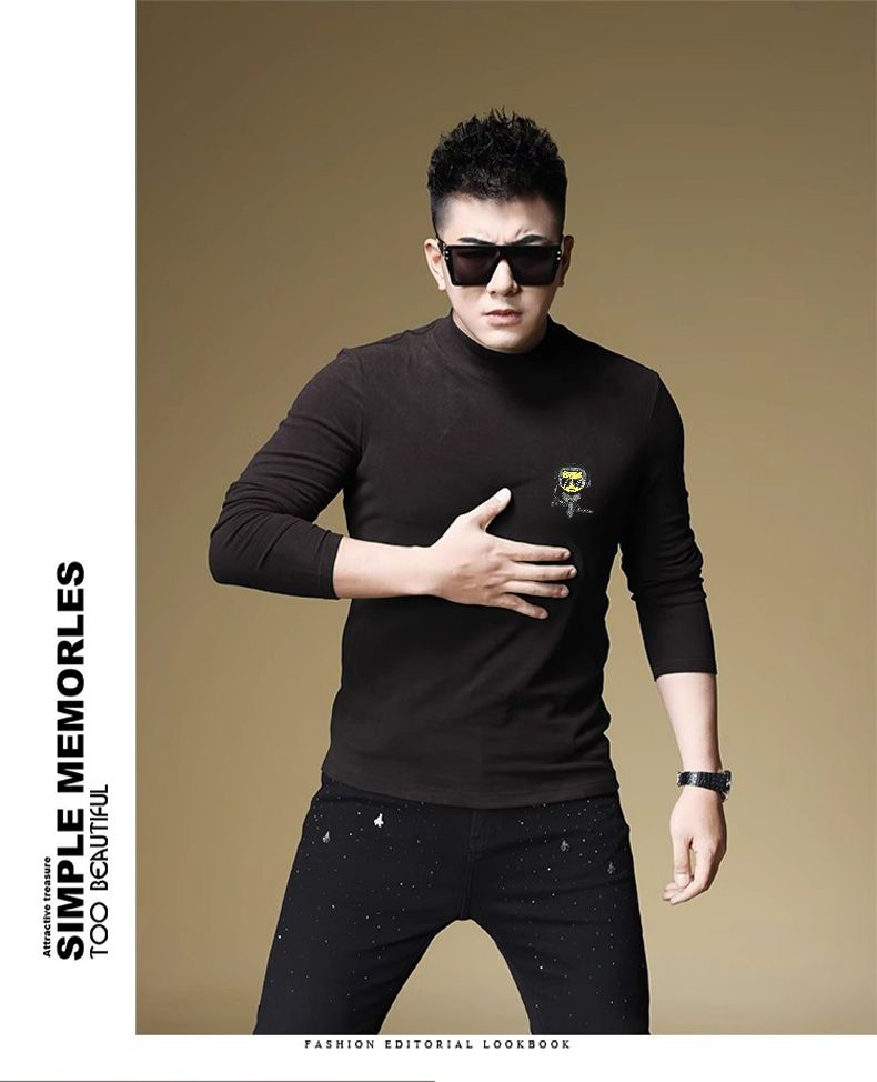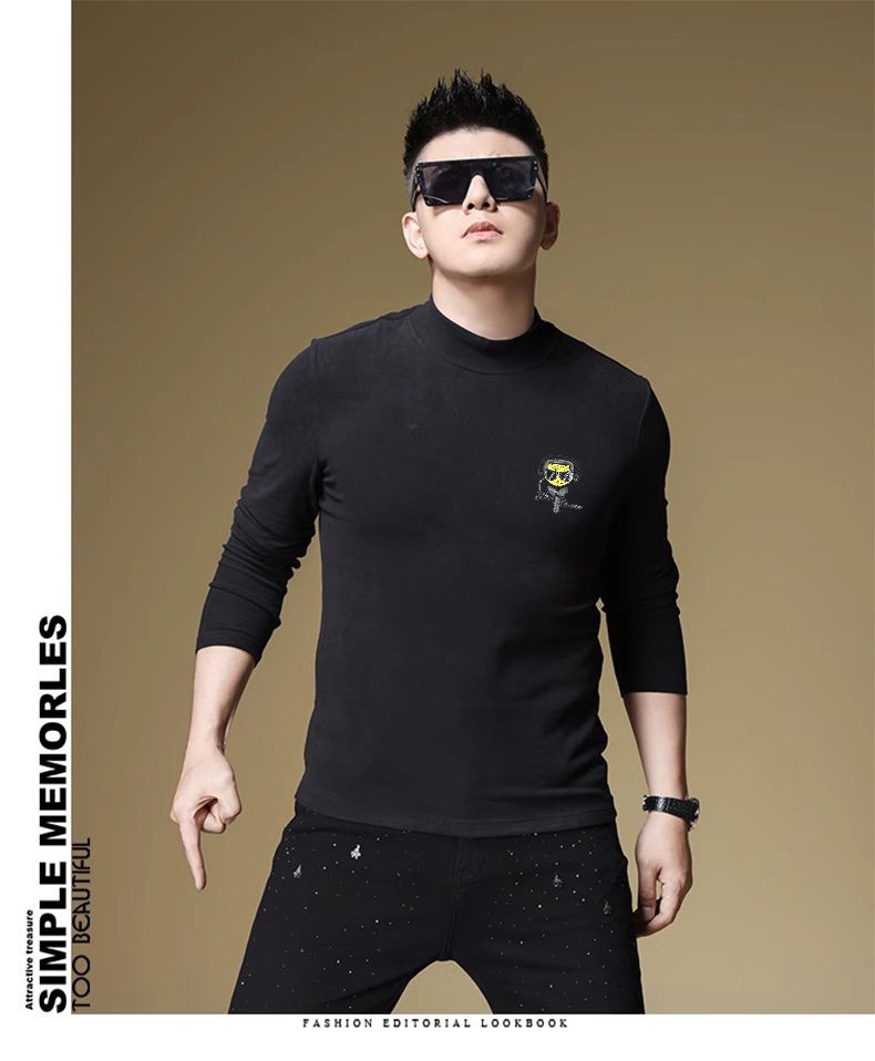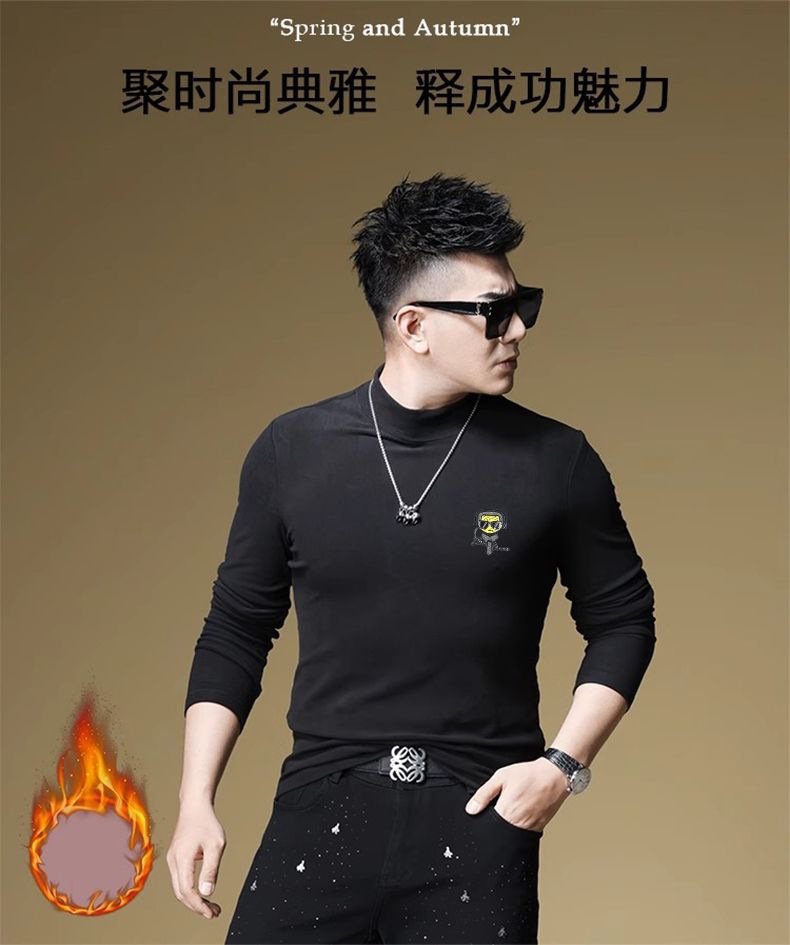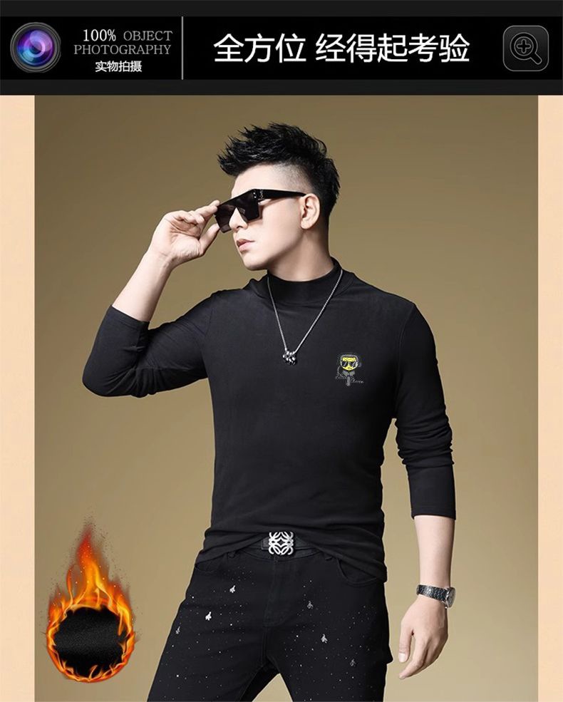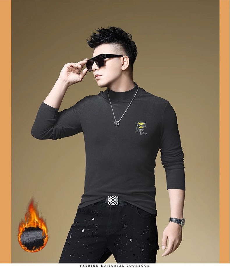 양털 모크 칼라 가을과 겨울 남자 긴팔 티셔츠 기모 두꺼운 따뜻한베이스 셔츠 속옷 미드 칼라 트렌디스토어 가기