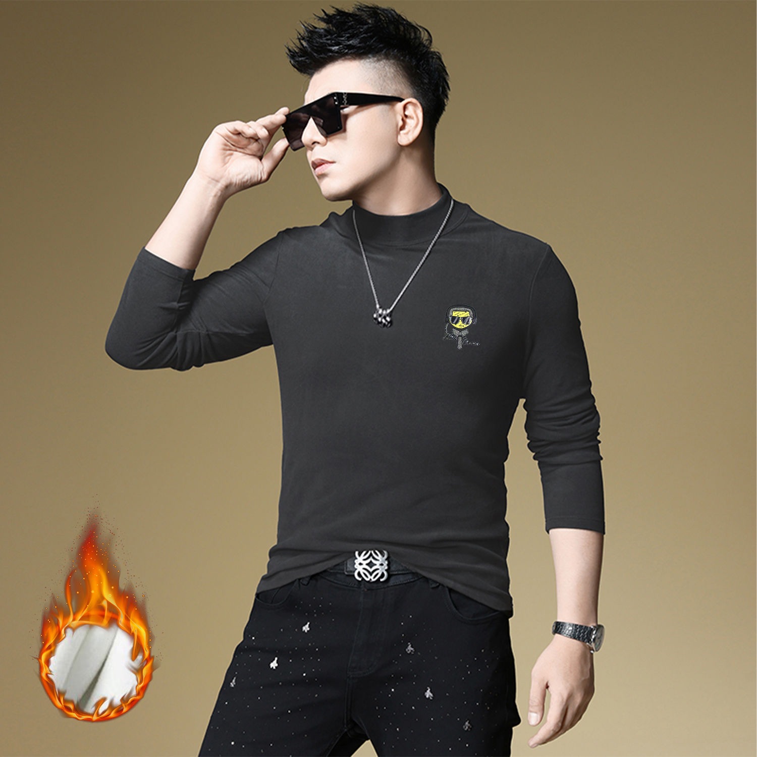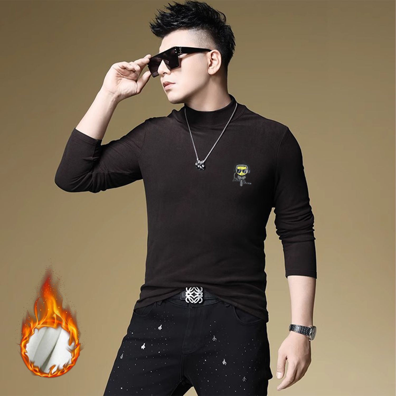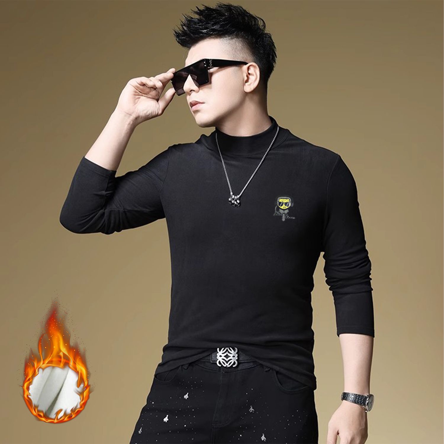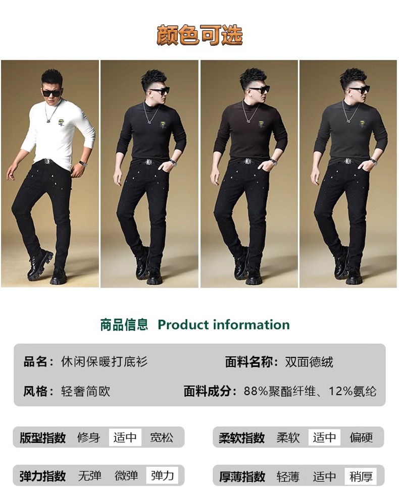양털 모크 칼라 가을과 겨울 남자 긴팔 티셔츠 기모 두꺼운 따뜻한베이스 셔츠 속옷 미드 칼라 트렌디스토어 가기