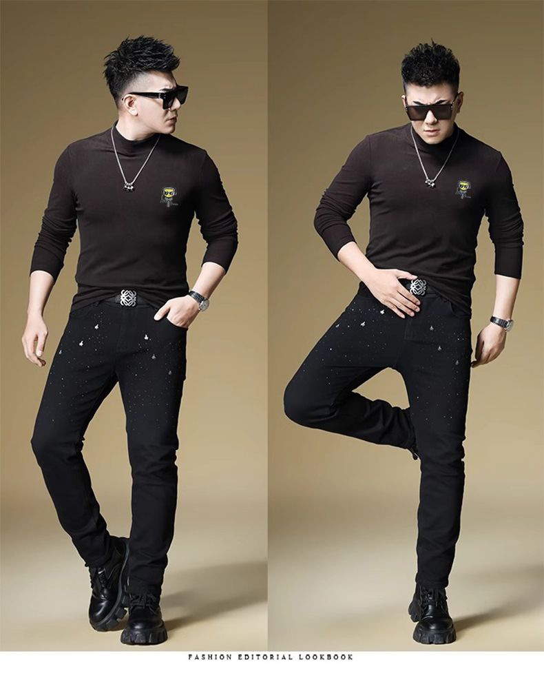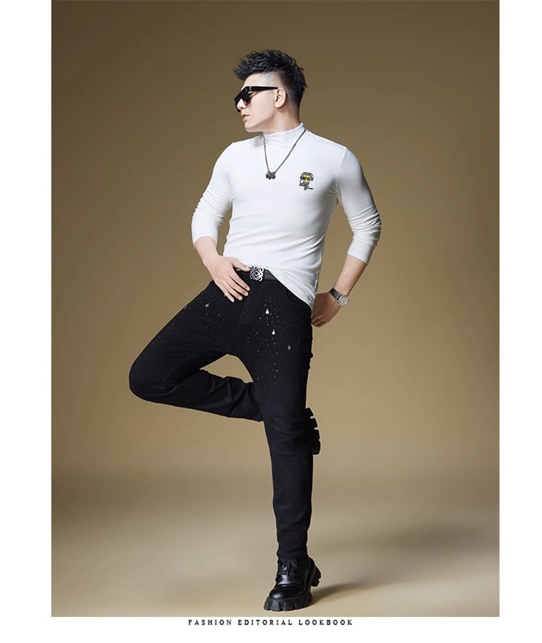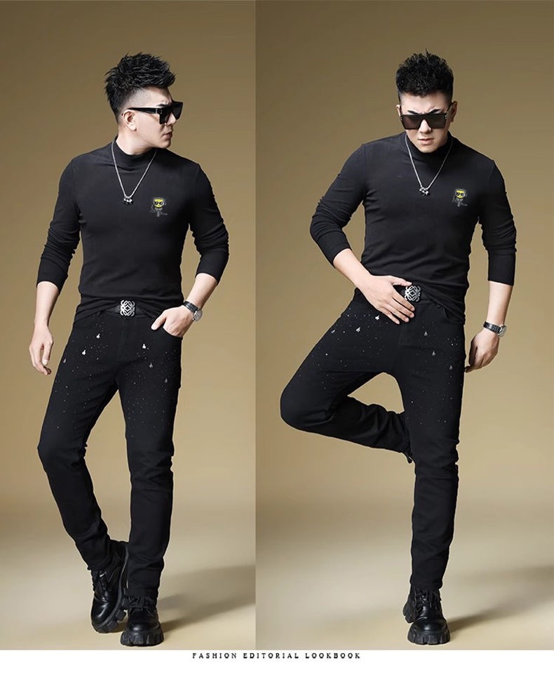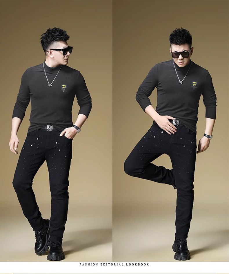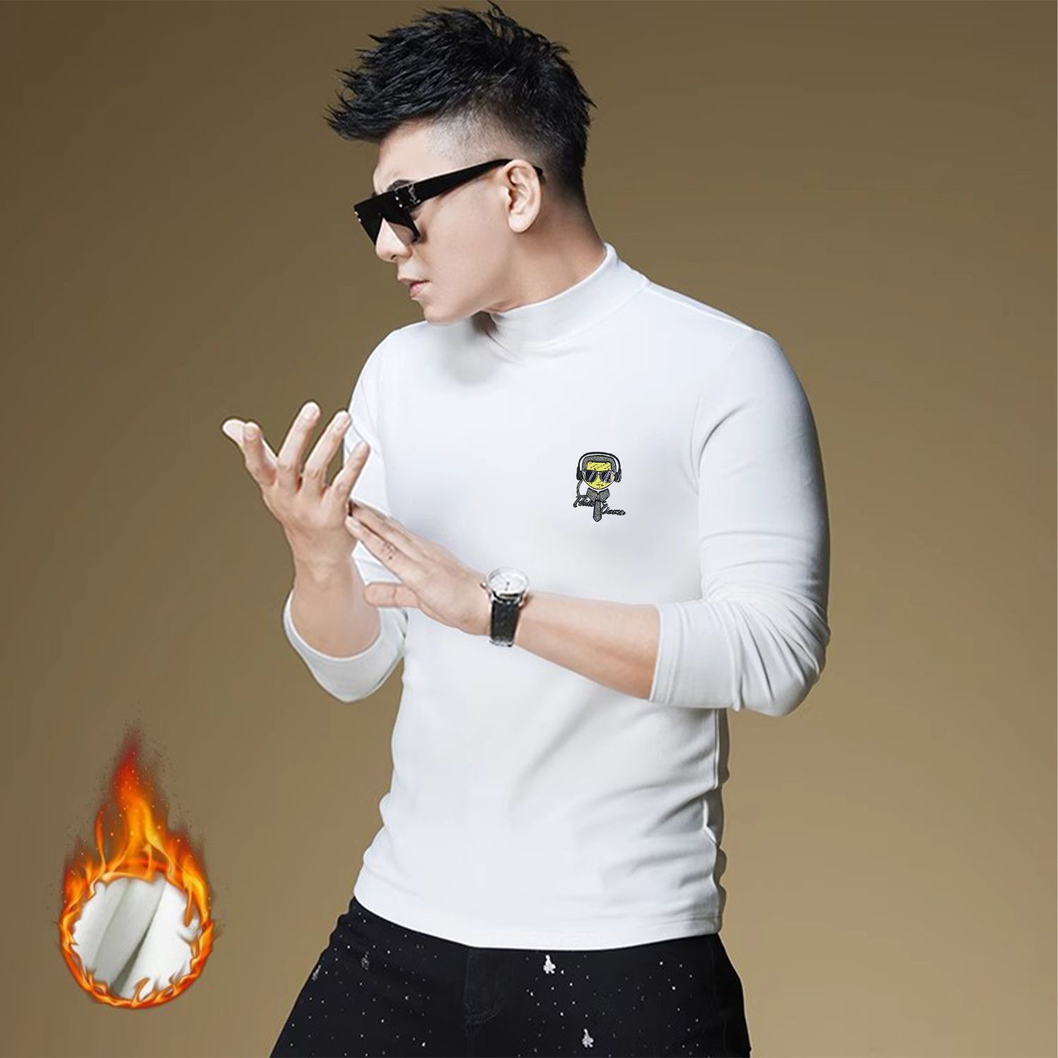 양털 모크 칼라 가을과 겨울 남자 긴팔 티셔츠 기모 두꺼운 따뜻한베이스 셔츠 속옷 미드 칼라 트렌디스토어 가기