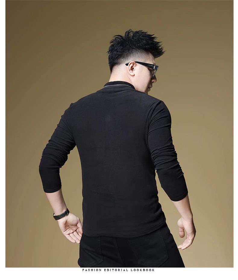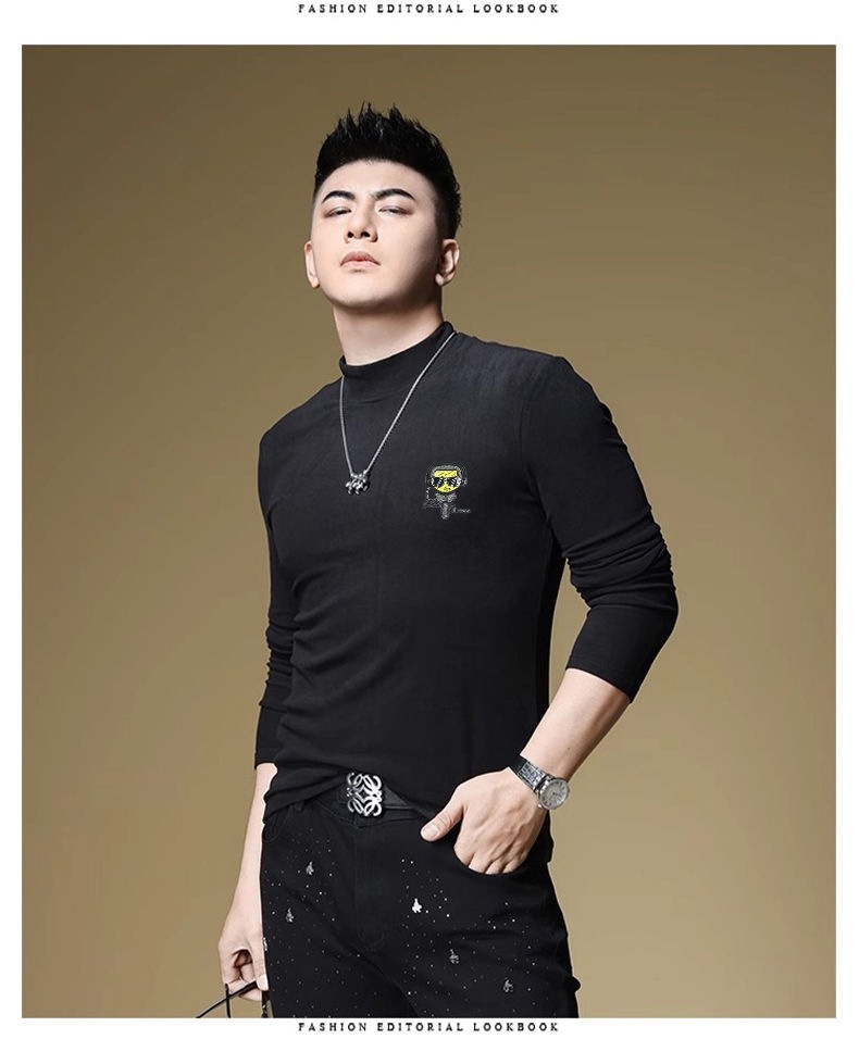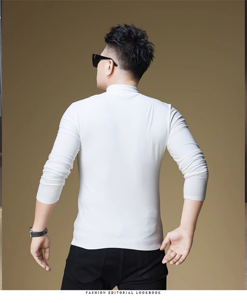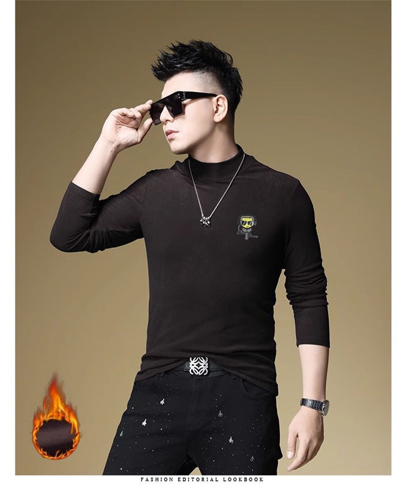 양털 모크 칼라 가을과 겨울 남자 긴팔 티셔츠 기모 두꺼운 따뜻한베이스 셔츠 속옷 미드 칼라 트렌디