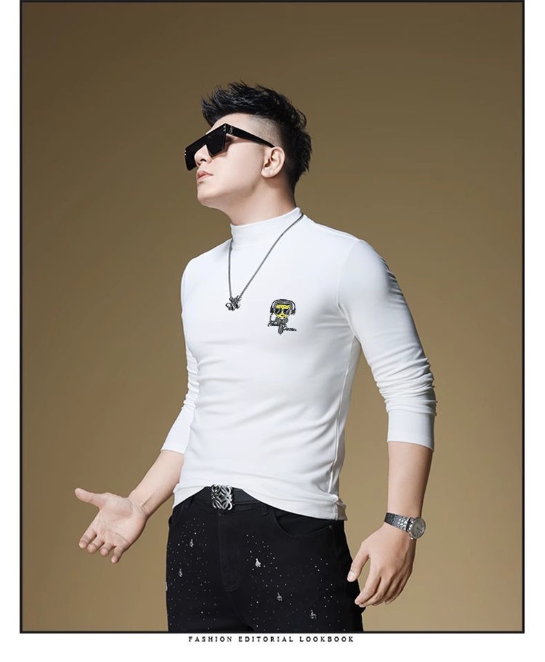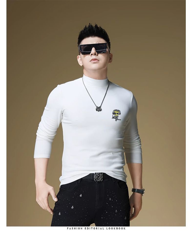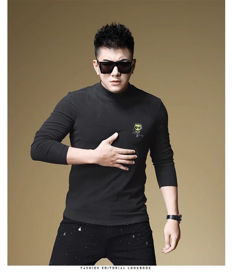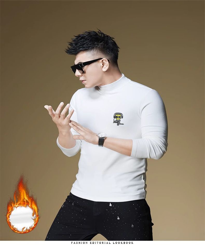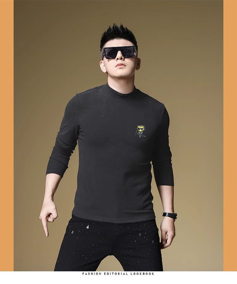 양털 모크 칼라 가을과 겨울 남자 긴팔 티셔츠 기모 두꺼운 따뜻한베이스 셔츠 속옷 미드 칼라 트렌디