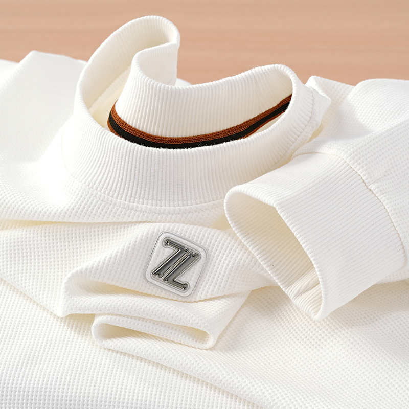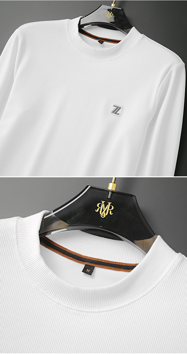 와플릭 시리즈 ~ 금속 편지 라벨 긴 소매 크루 넥 티셔츠 남자의 가을과 겨울 따뜻한 탄성 편안한 스웨터베이스 셔츠스토어 가기