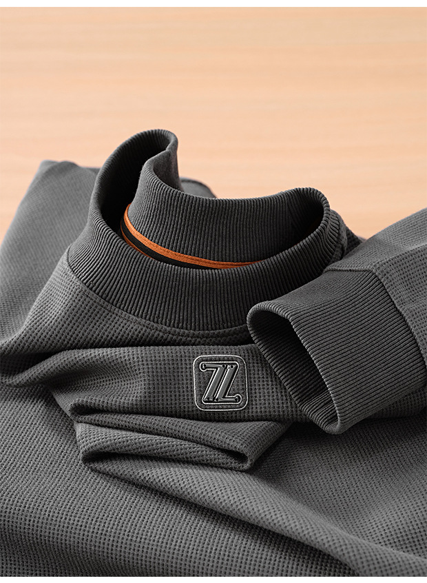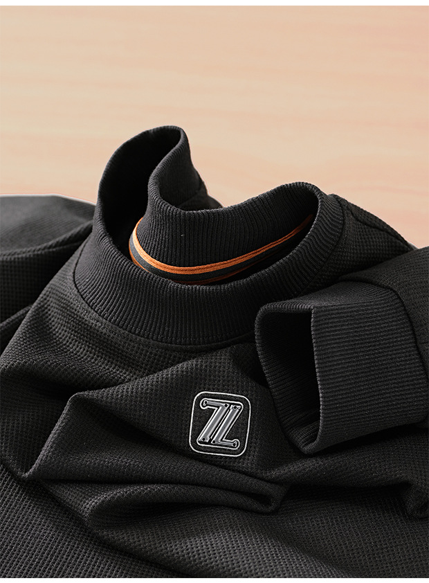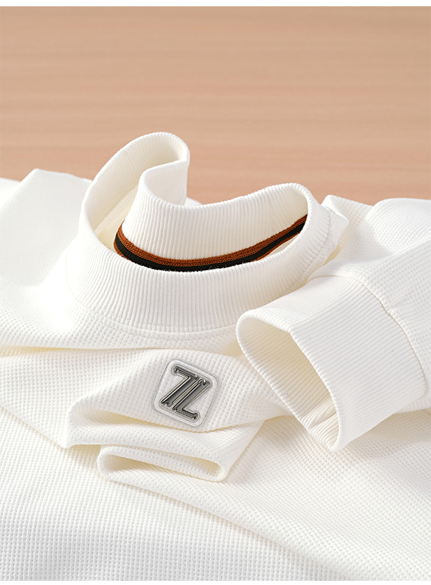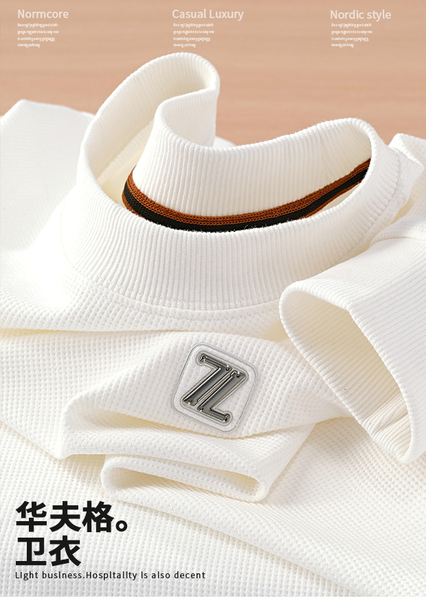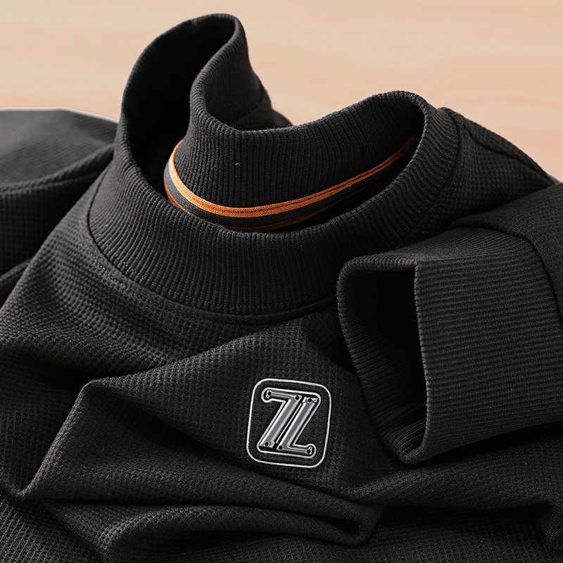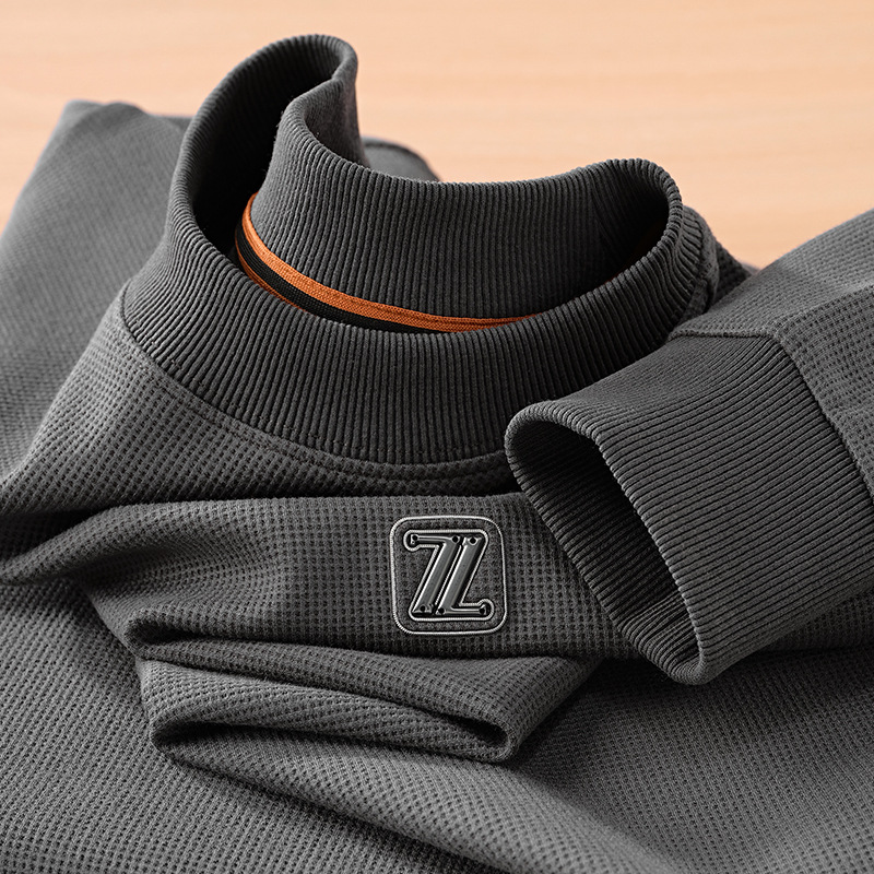 와플릭 시리즈 ~ 금속 편지 라벨 긴 소매 크루 넥 티셔츠 남자의 가을과 겨울 따뜻한 탄성 편안한 스웨터베이스 셔츠
