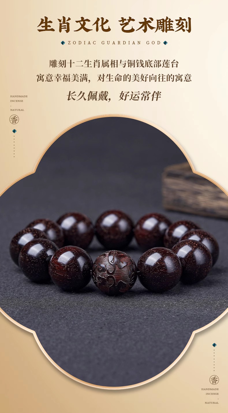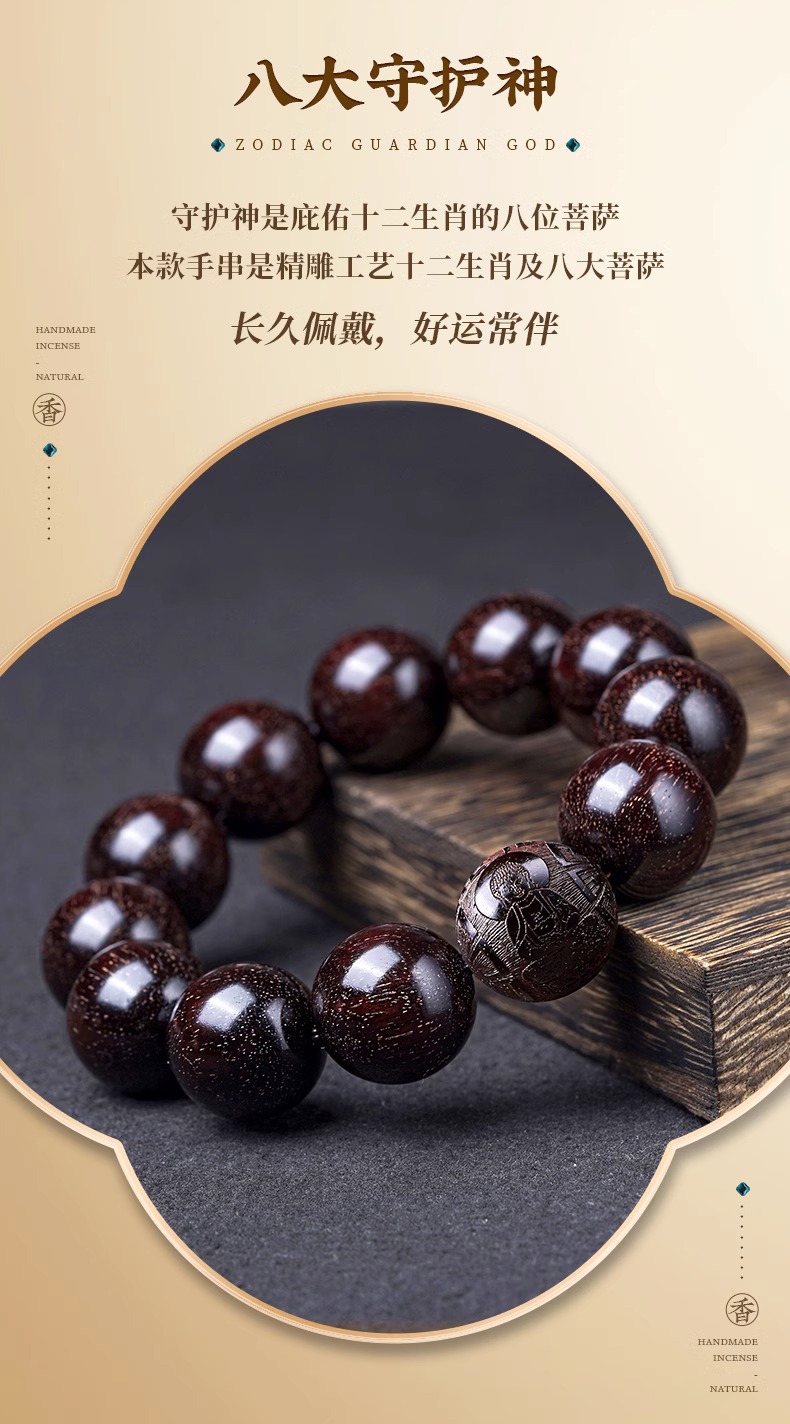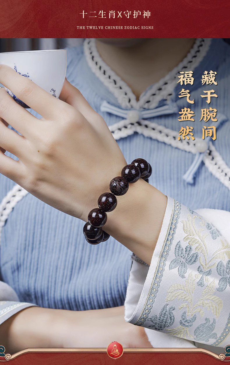 금성 12 조디악 년 남성 문학 연극 로즈 우드 팔찌로 가득 찬 정통 천연 로반 붉은 백단재 오래된 소재 팔찌스토어 가기