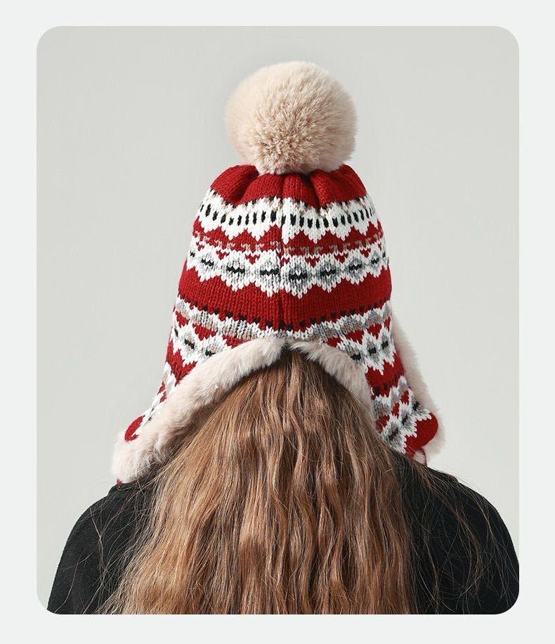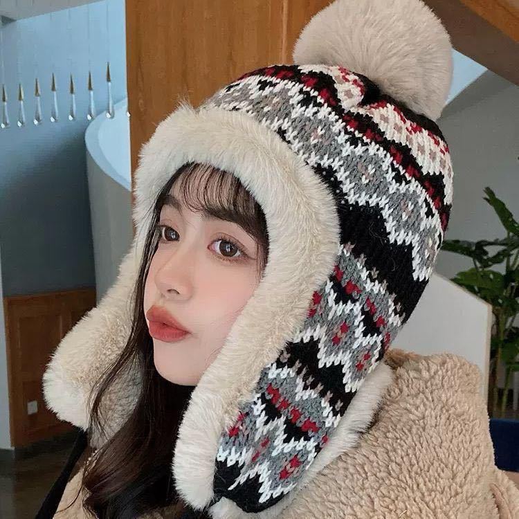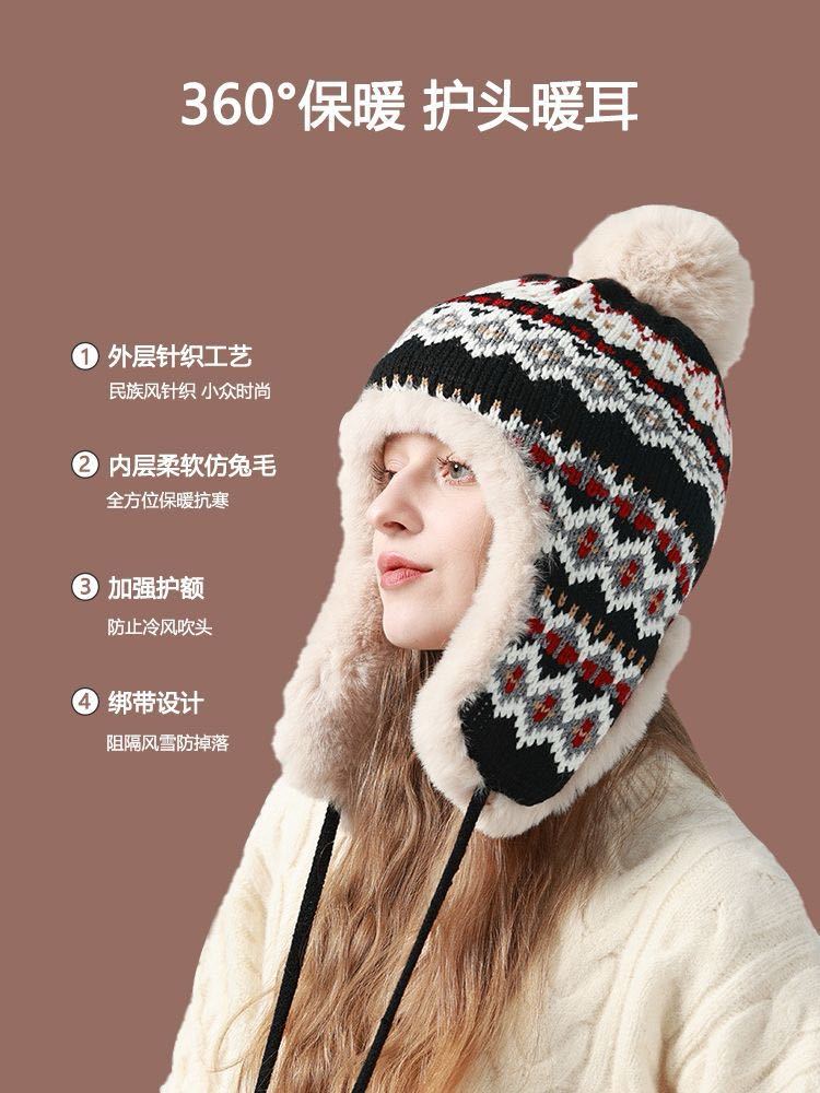 가을 겨울 여성용 귀 보호 플러시 헤드기어 모자, 니트 모자, 자전거 타기용 방풍, 플러시 안감, 두꺼운 보온 니트 모자스토어 가기