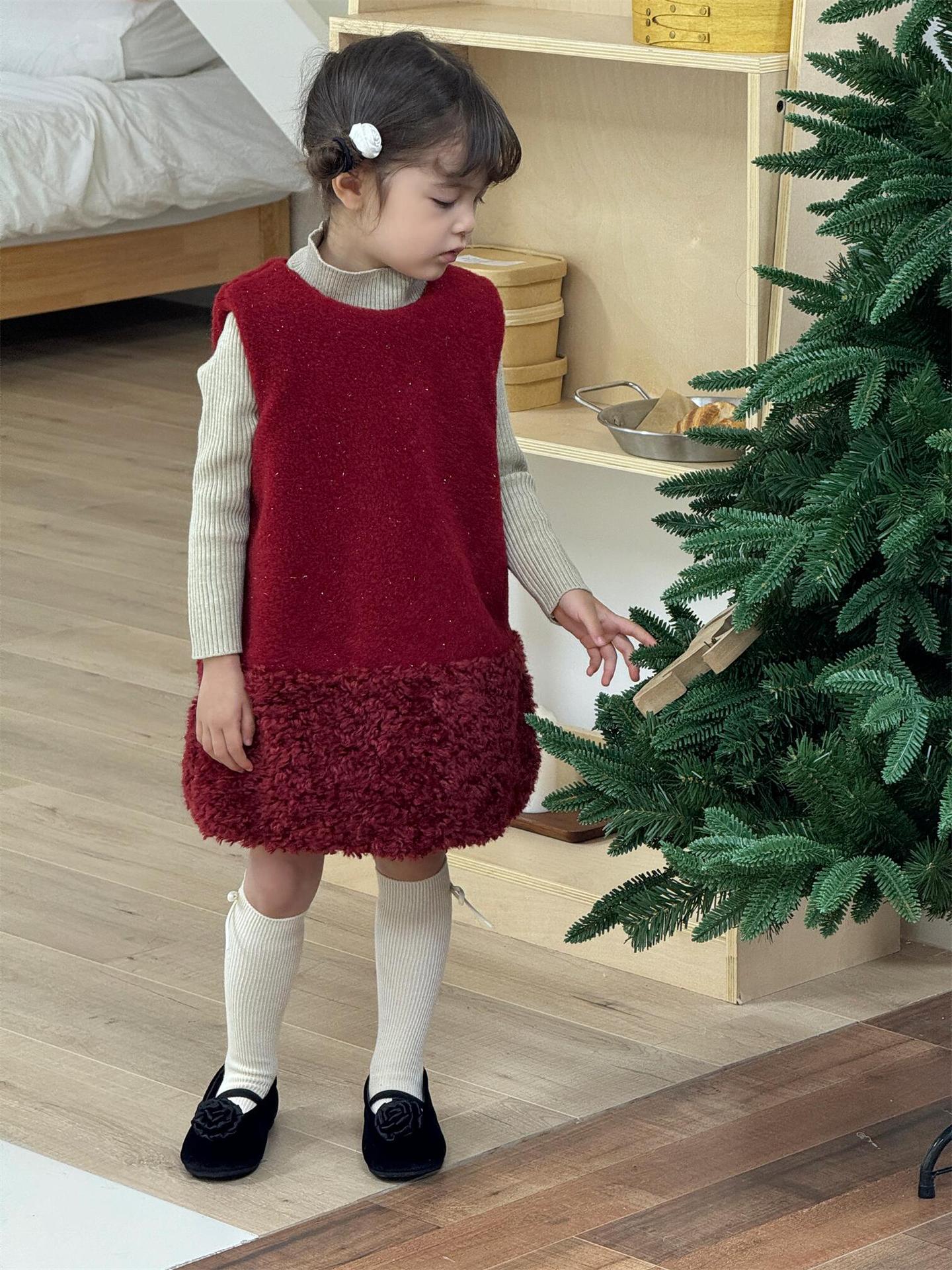 뾰족한 달걀 한국 아동복 2024 겨울 새 소녀 원피스 민소매 서양식 조끼 치마 밝은 실크 연례 원피스스토어 가기