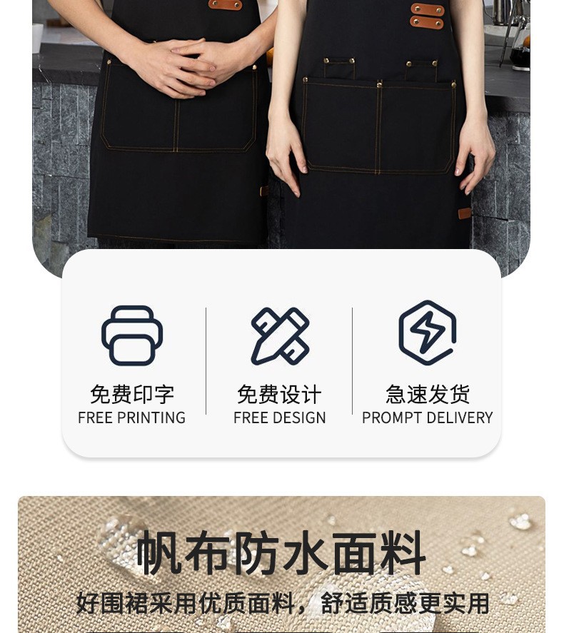 캔버스 앞치마 맞춤 인쇄 커피 우유 차 가게 허리 가정용 주방 원예 작업 옷 먼지 방지 광고 국경