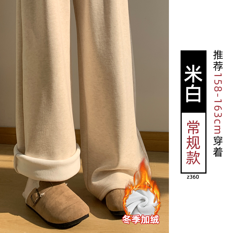 화이트 모조 캐시미어 찹쌀 바지 여성용 가을과 겨울 기모 좁은 에디션 스트레이트 캐주얼 짧은 래핑 넓은 다리 바지스토어 가기