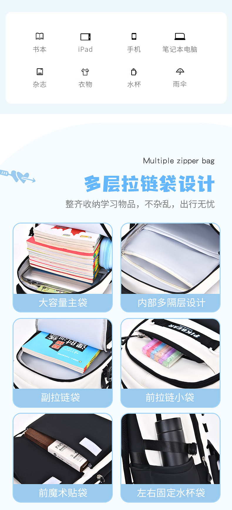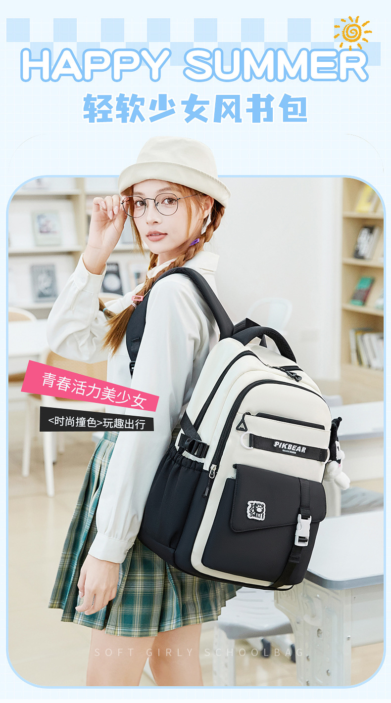 2024 새로운 대용량 여성 솔리드 컬러 스쿨 시즌 고등학생 배낭 초등학생을위한 캐주얼 간단한 스쿨 백스토어 가기