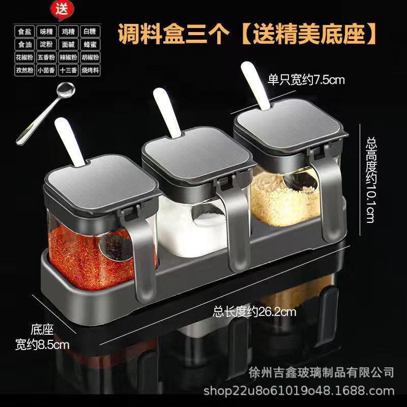 • [블랙] 양념통 3개 + 베이스 (프리 스틸 스푼 + 방수 라벨)