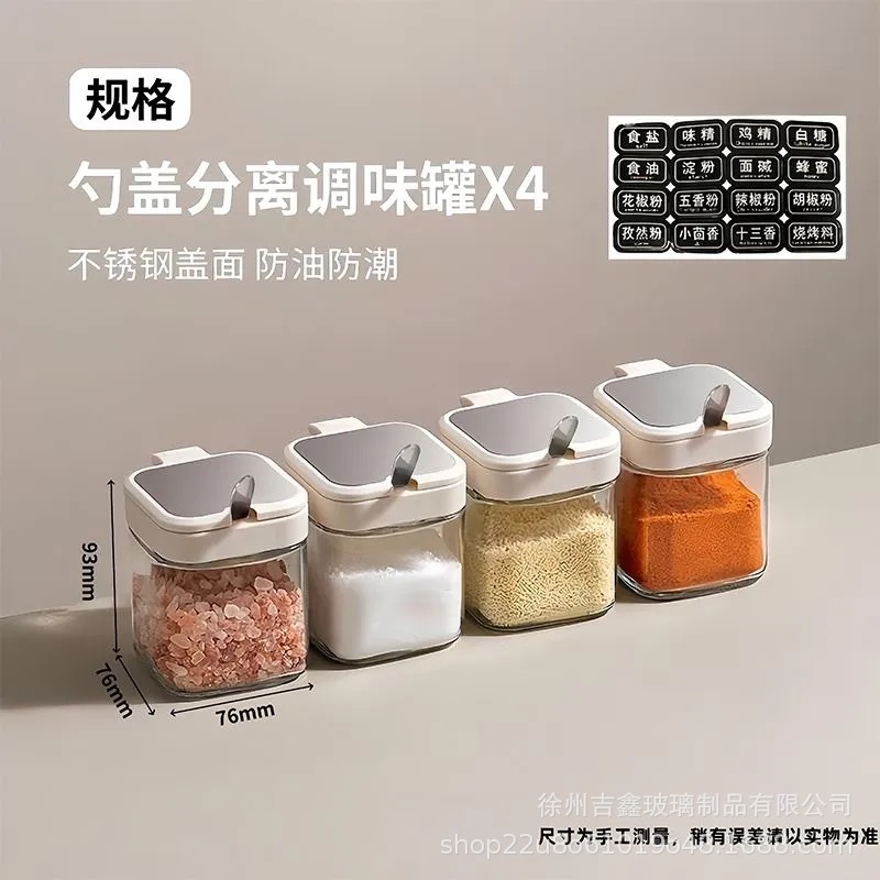 • [화이트] 양념통 4개 (프리스틸 스푼 + 방수 라벨)