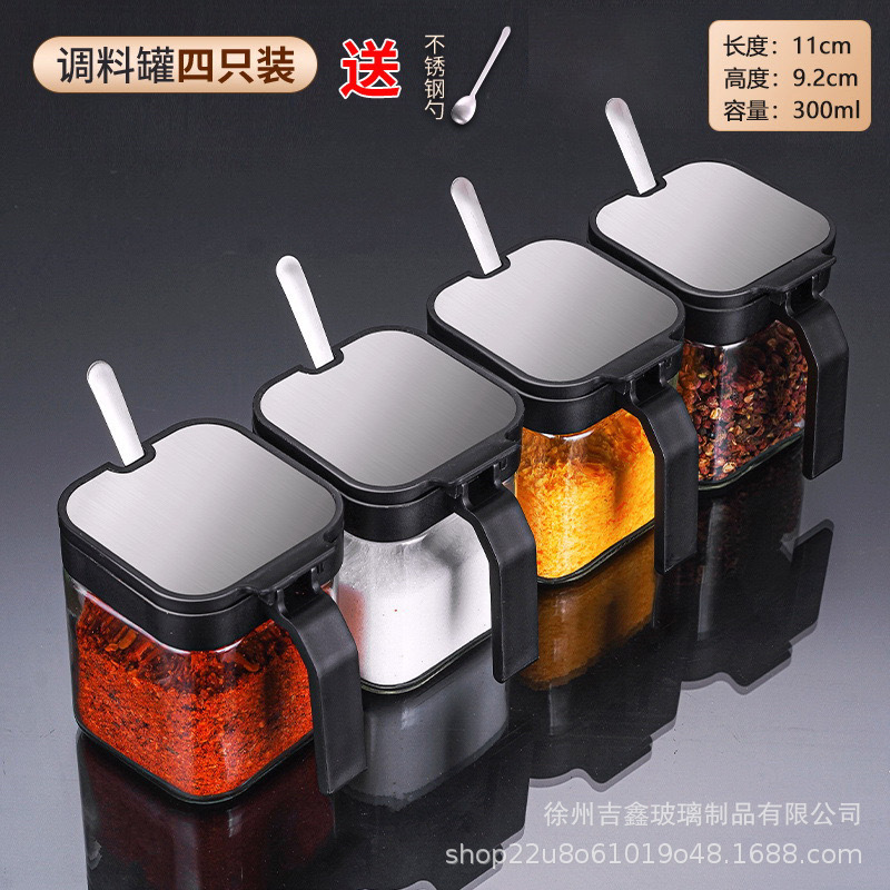 • [블랙] 양념통 4개 (프리 스틸 스푼 + 방수 라벨)