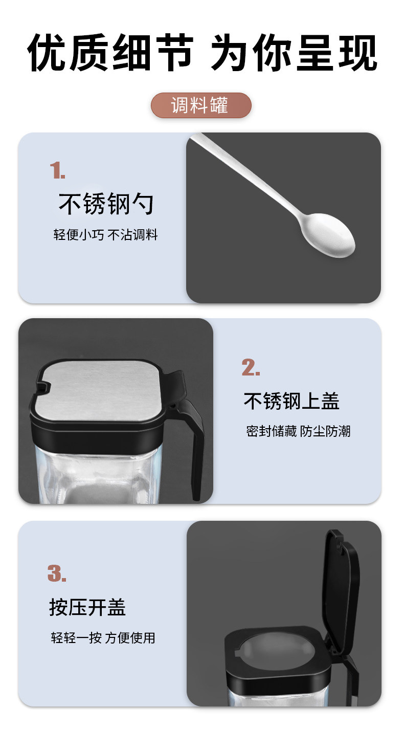 주방용 조미료 병 유리병 무타공 소금 보관함 소금통 세트 스테인리스 조미료 선반