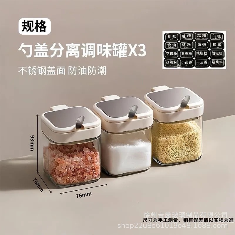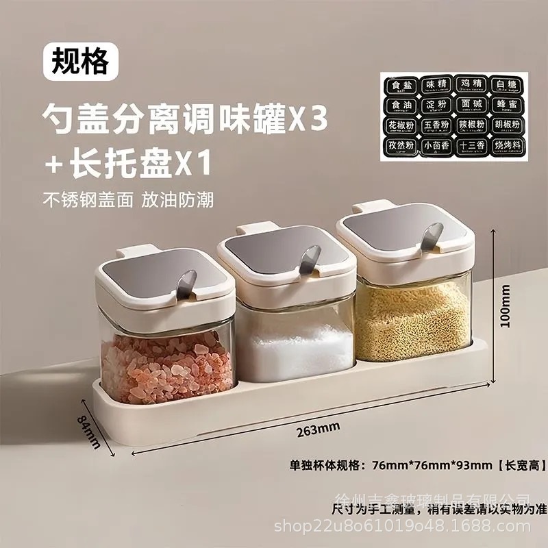 • [화이트] 양념통 3개 (프리 스틸 스푼 + 방수 라벨)