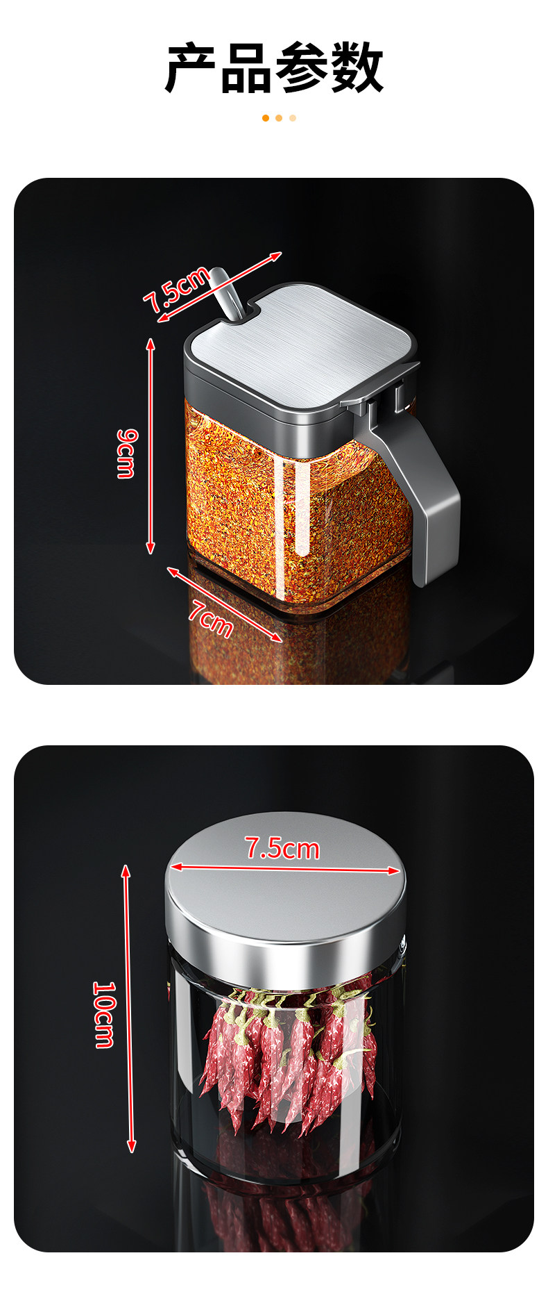 • [블랙] 양념통 1개 (프리 스틸 스푼 + 방수 라벨)