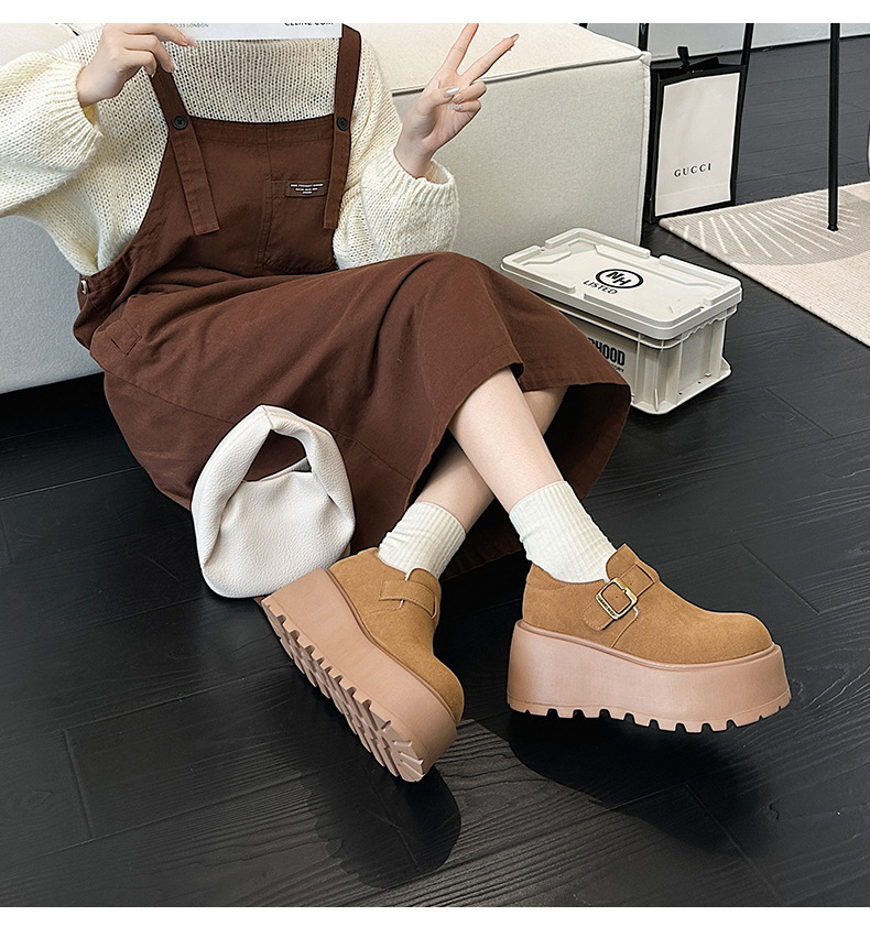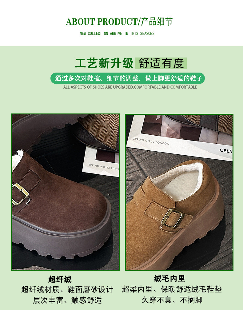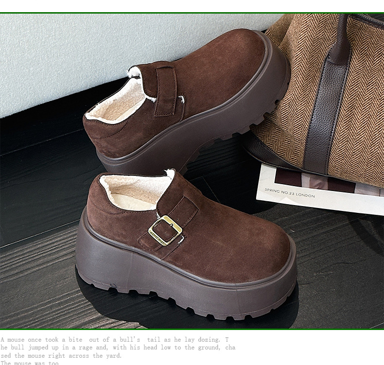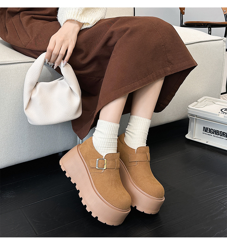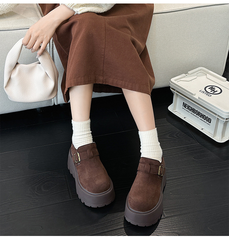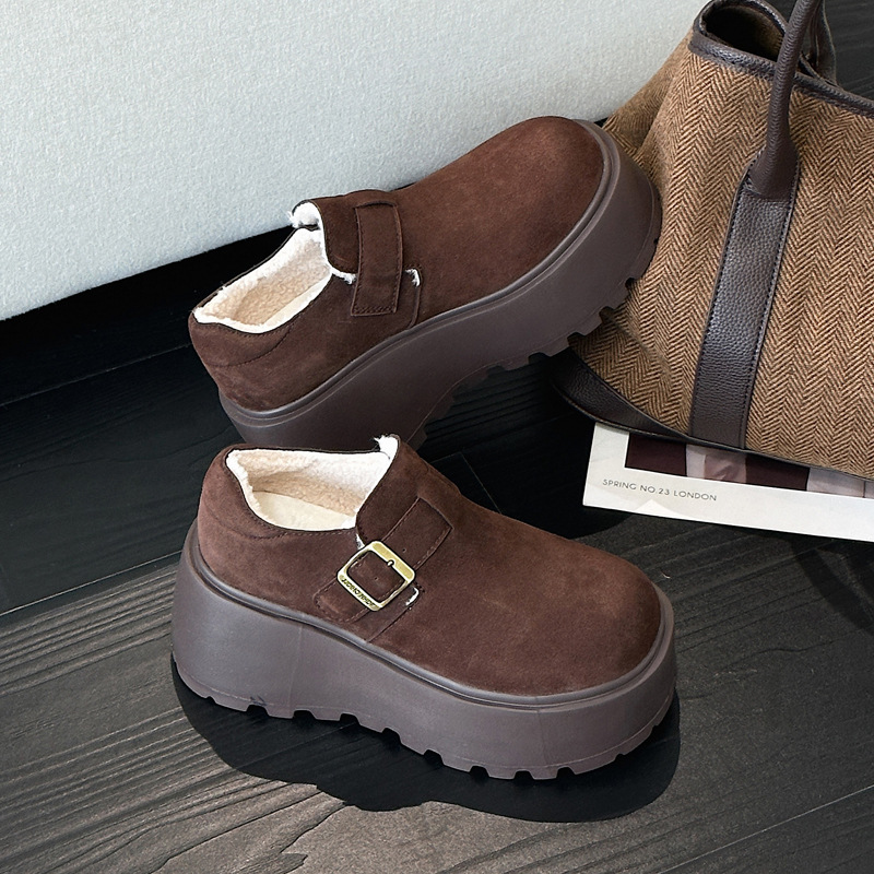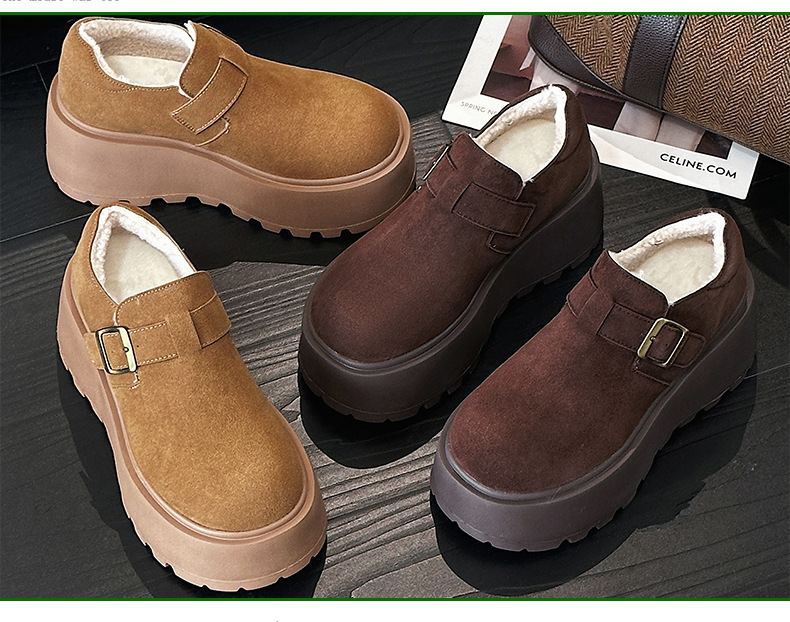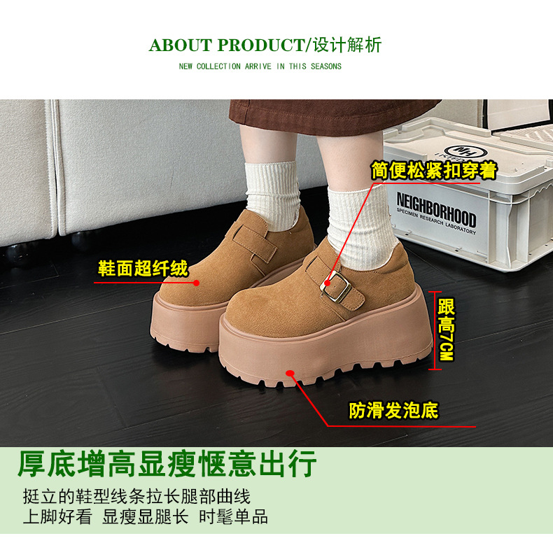 여성용 두꺼운 밑창 일체형 버켄스탁 슈즈 2025 신상 벨벳 슬립온 로퍼, 키높이 로퍼 하이힐스토어 가기