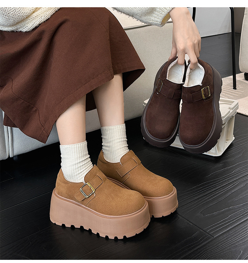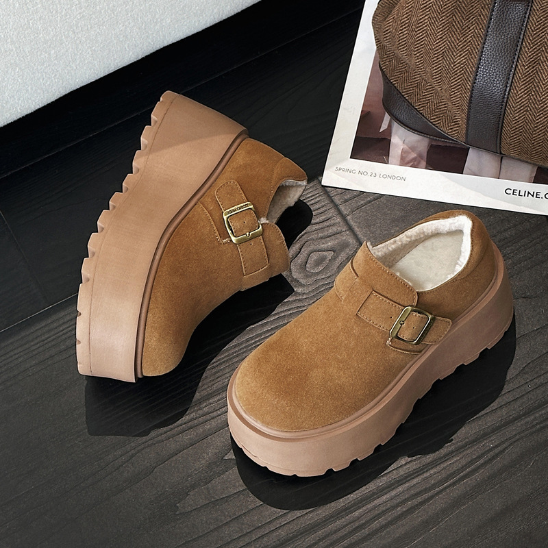 여성용 두꺼운 밑창 일체형 버켄스탁 슈즈 2025 신상 벨벳 슬립온 로퍼, 키높이 로퍼 하이힐