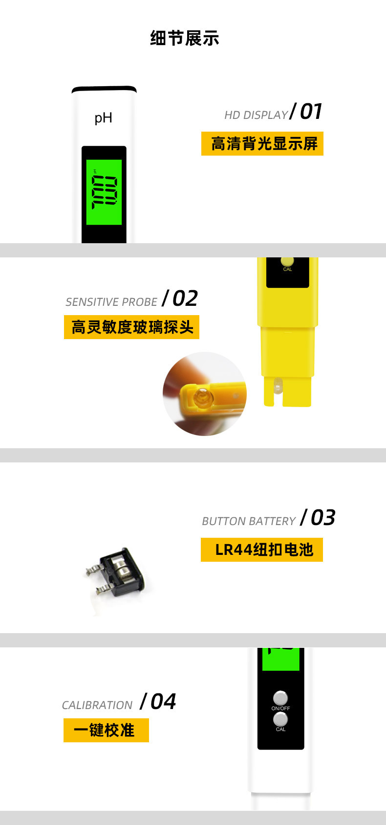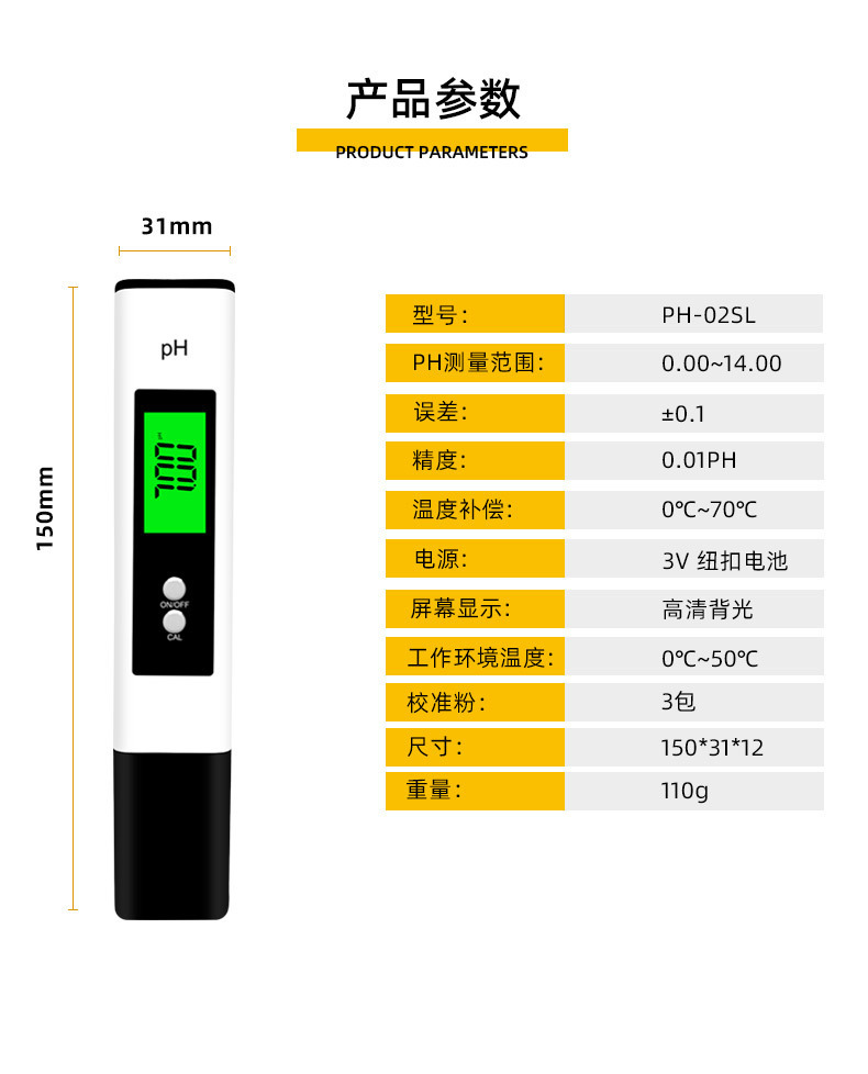 새로운 수출 휴대용 pH 미터 0.01 정밀 수질 탐지기 pH 미터 수족관 ph 테스트 미터