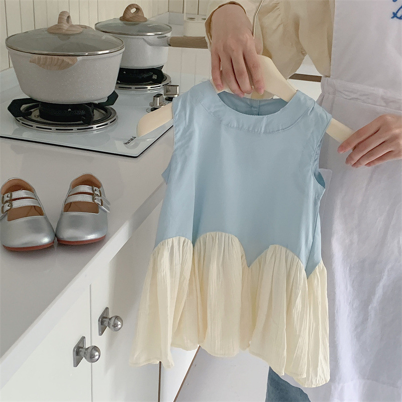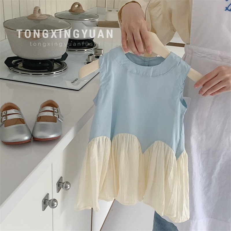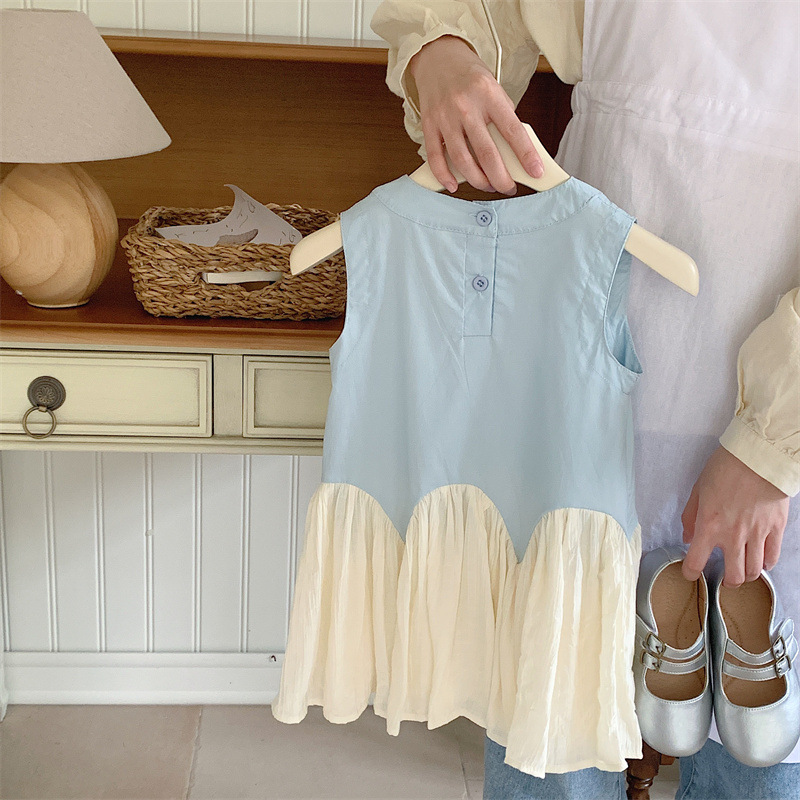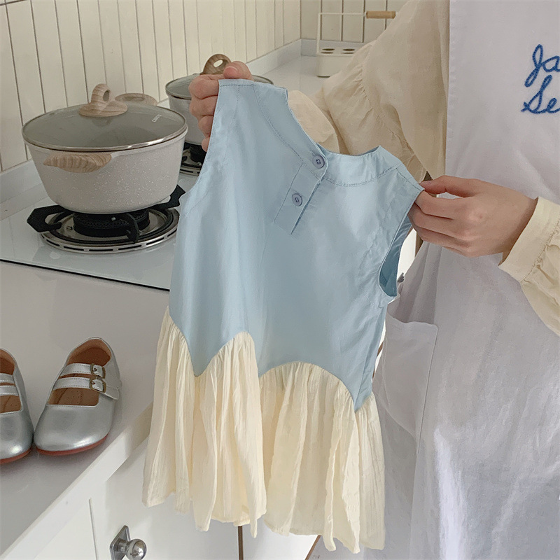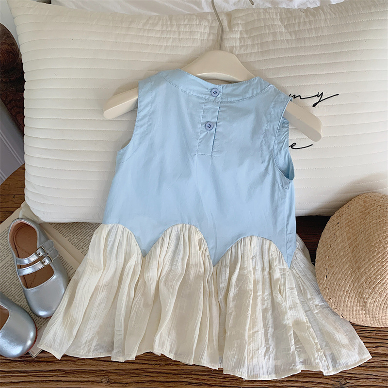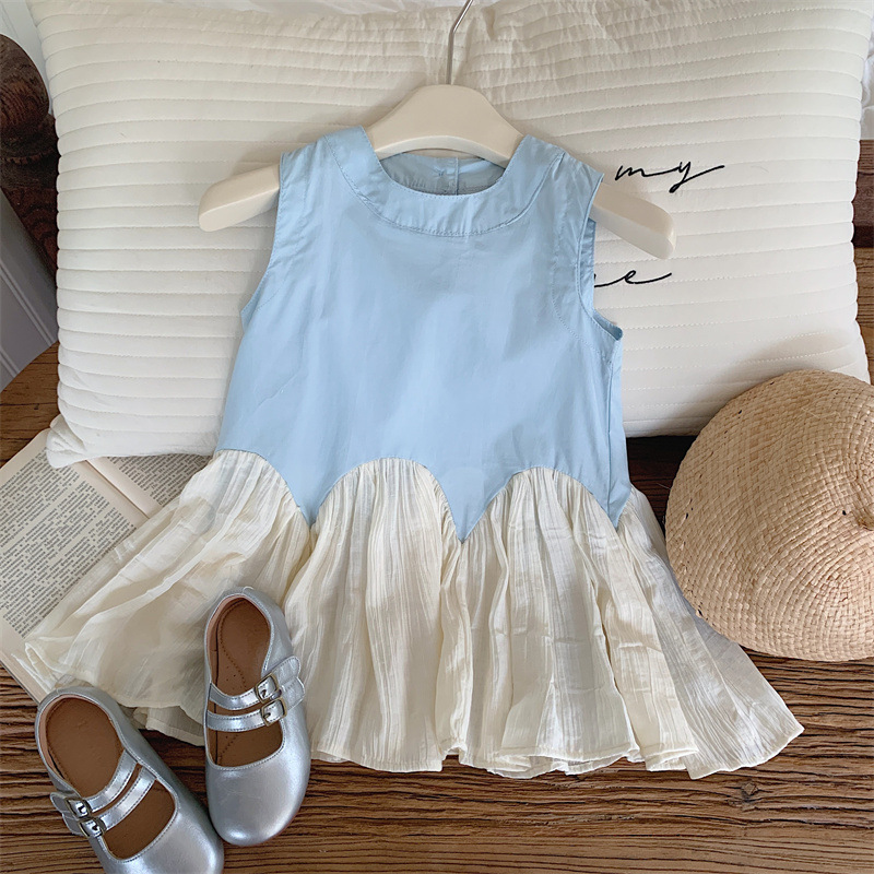 한국 버전 2024 새로운 여름 소녀 조끼 원피스 아동복 서양식 사람들 피쉬 테일 공주 스커트 도매스토어 가기