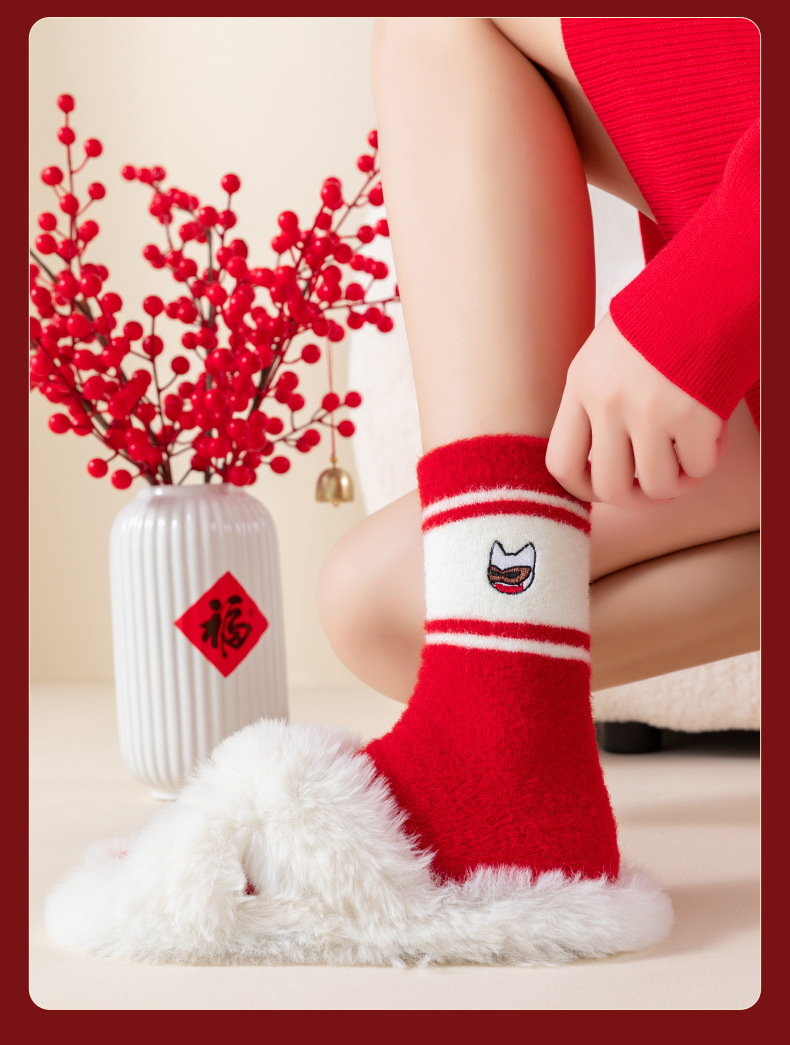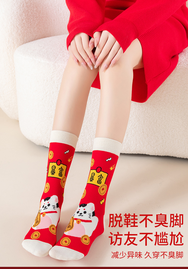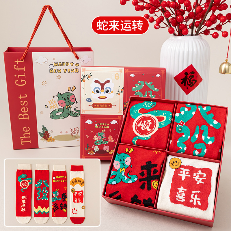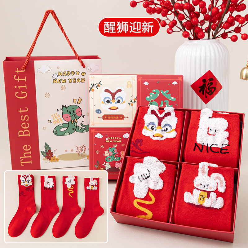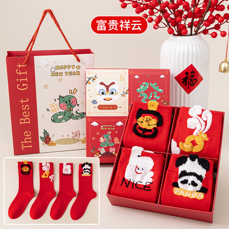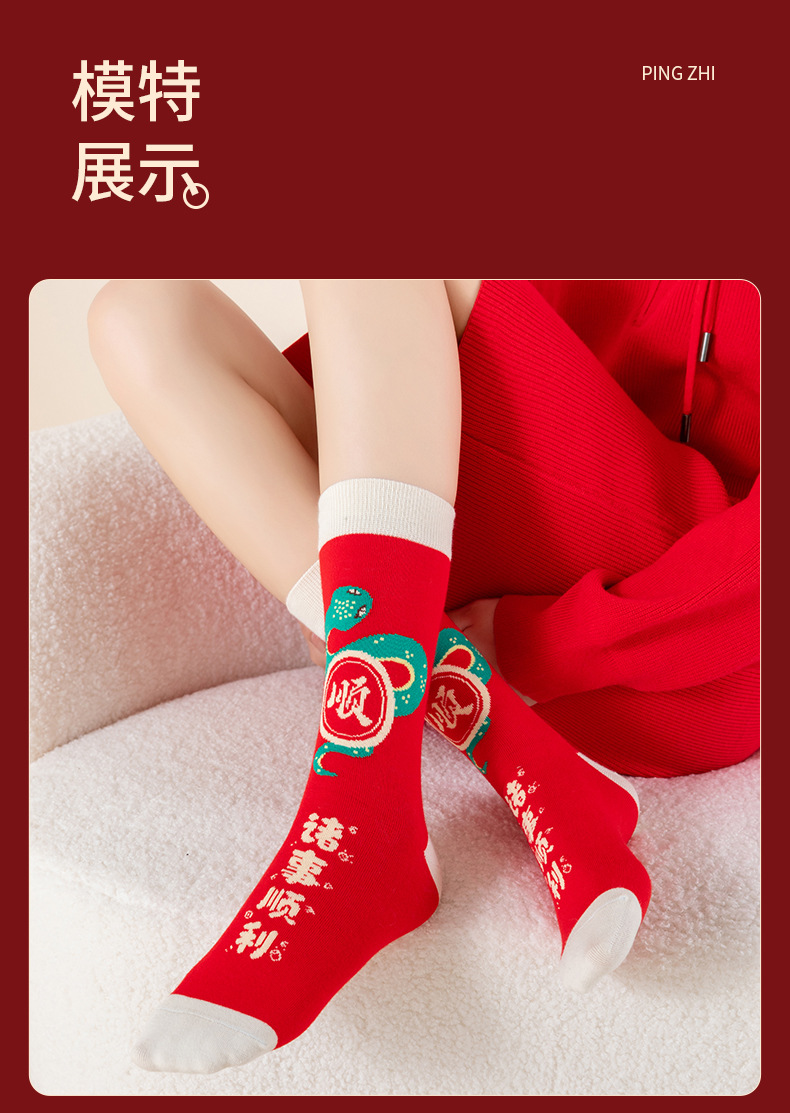 빨간 양말 여성 자수 큰 붉은 면화 양말은 뱀의 해, 올해의 양말의 탄생년 가을 겨울 새해 선물 상자에 속합니다.스토어 가기