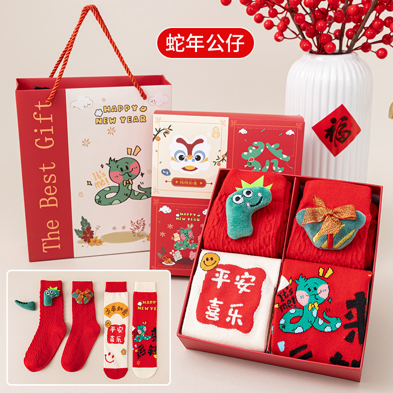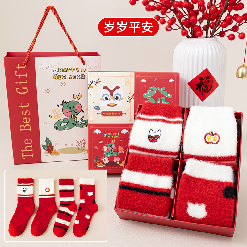 빨간 양말 여성 자수 큰 붉은 면화 양말은 뱀의 해, 올해의 양말의 탄생년 가을 겨울 새해 선물 상자에 속합니다.