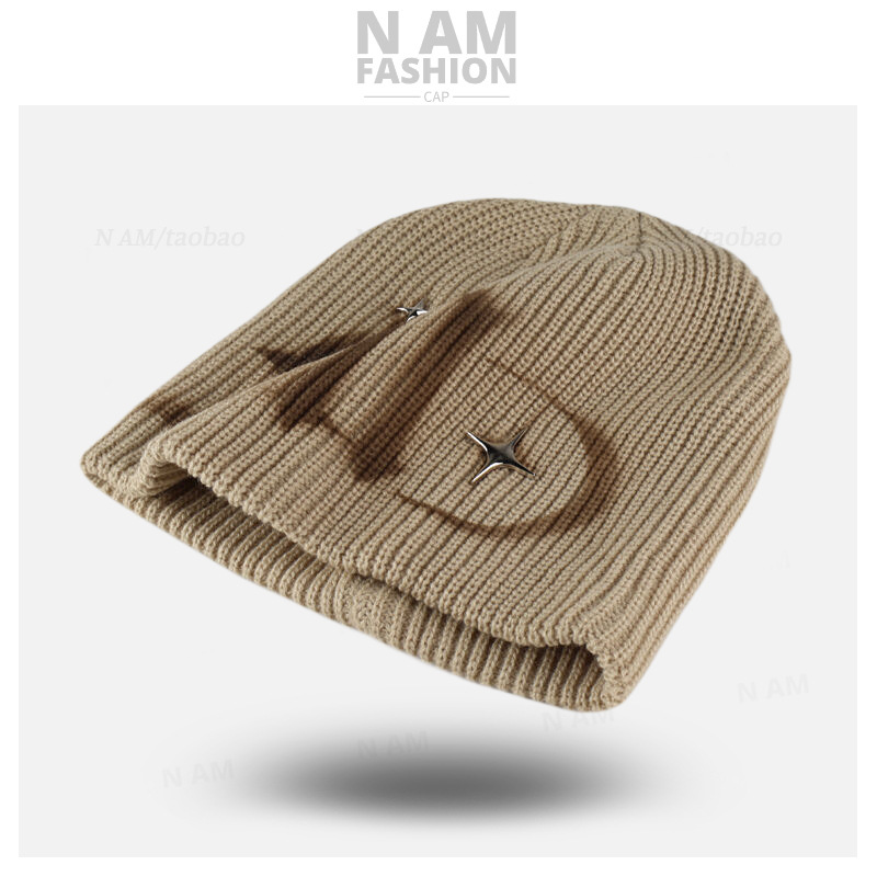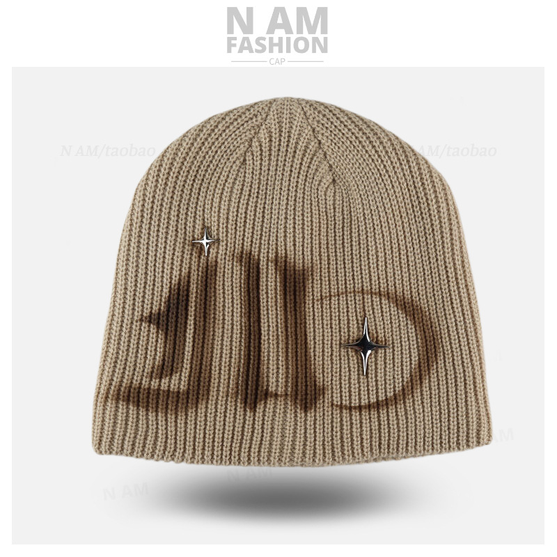 • 별이 달린 낙서 편지 차가운 모자 카키색