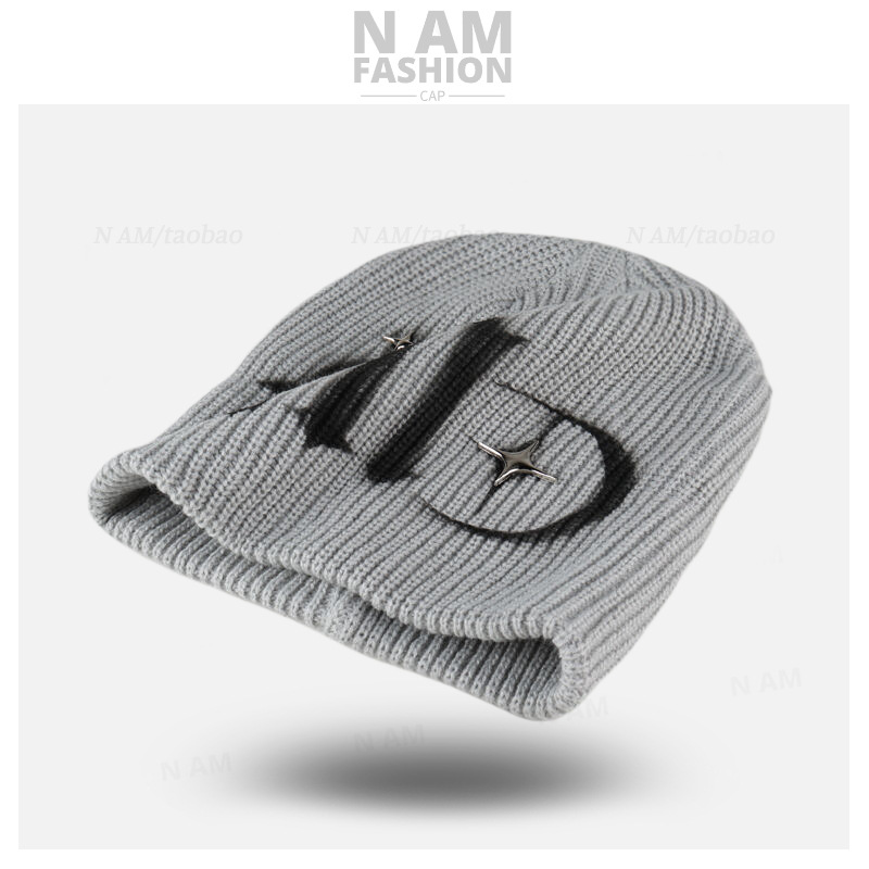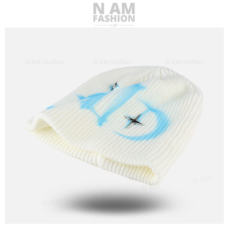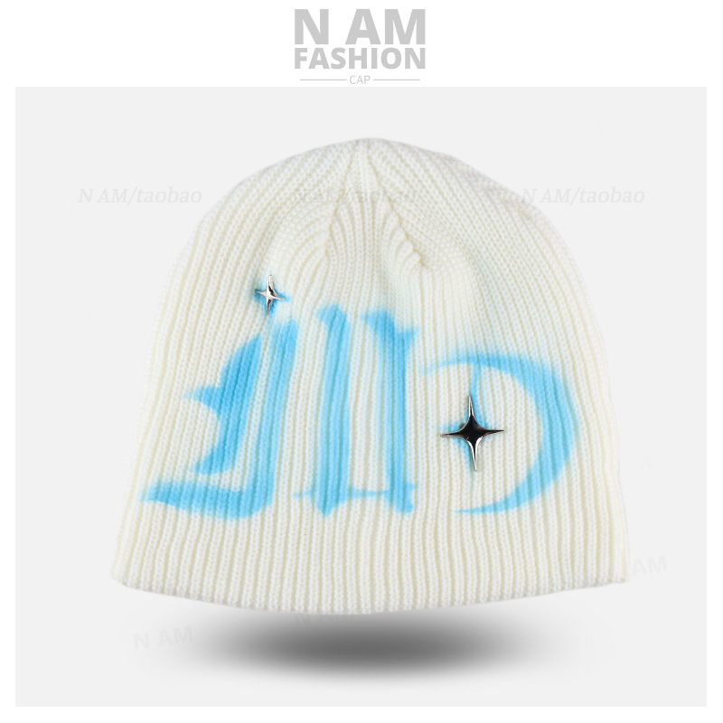 스트리트 스타일 편지 힙 모자 차가운 모자 남자의 가을과 겨울 거리 달콤한 멋진 유럽과 미국 스타일 스프레이 페인팅 니트 울 모자 여성스토어 가기