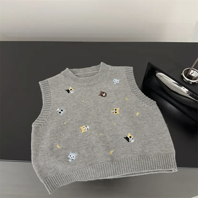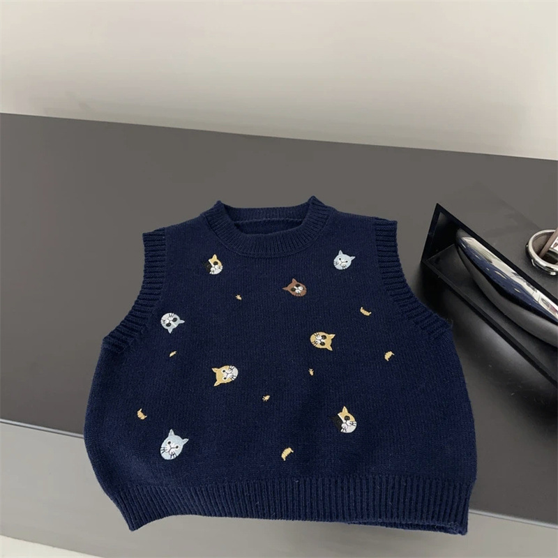 샤오 마오 자수 대학 스타일 니트 조끼 가을과 겨울 새로운 올 매치 양복 조끼 스웨터 탑 세트 도매스토어 가기