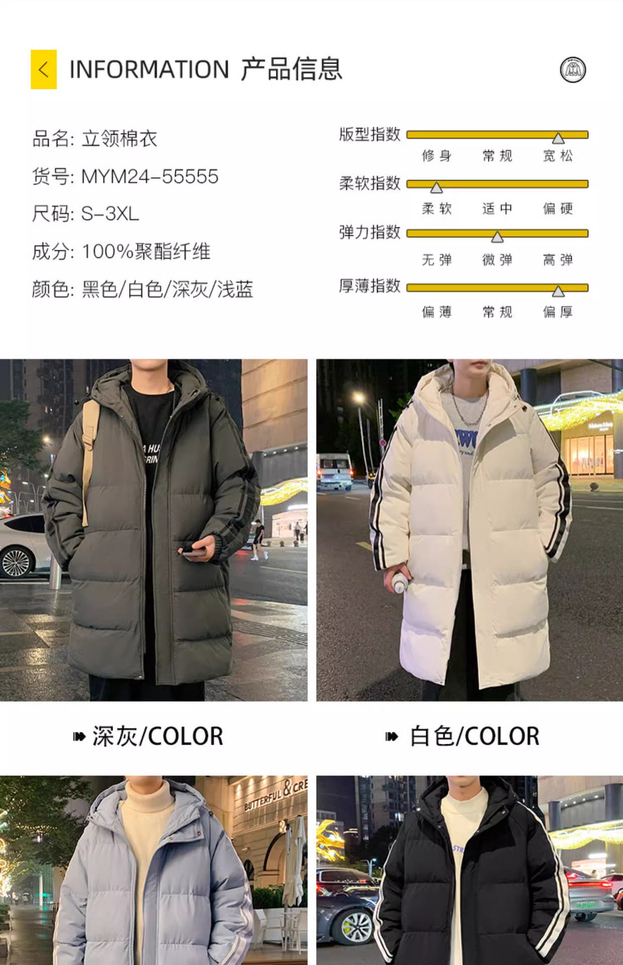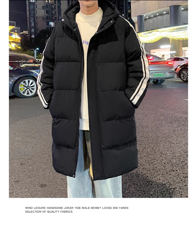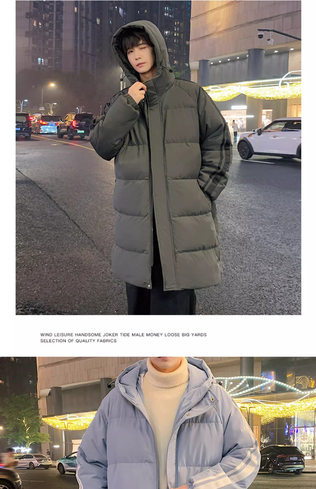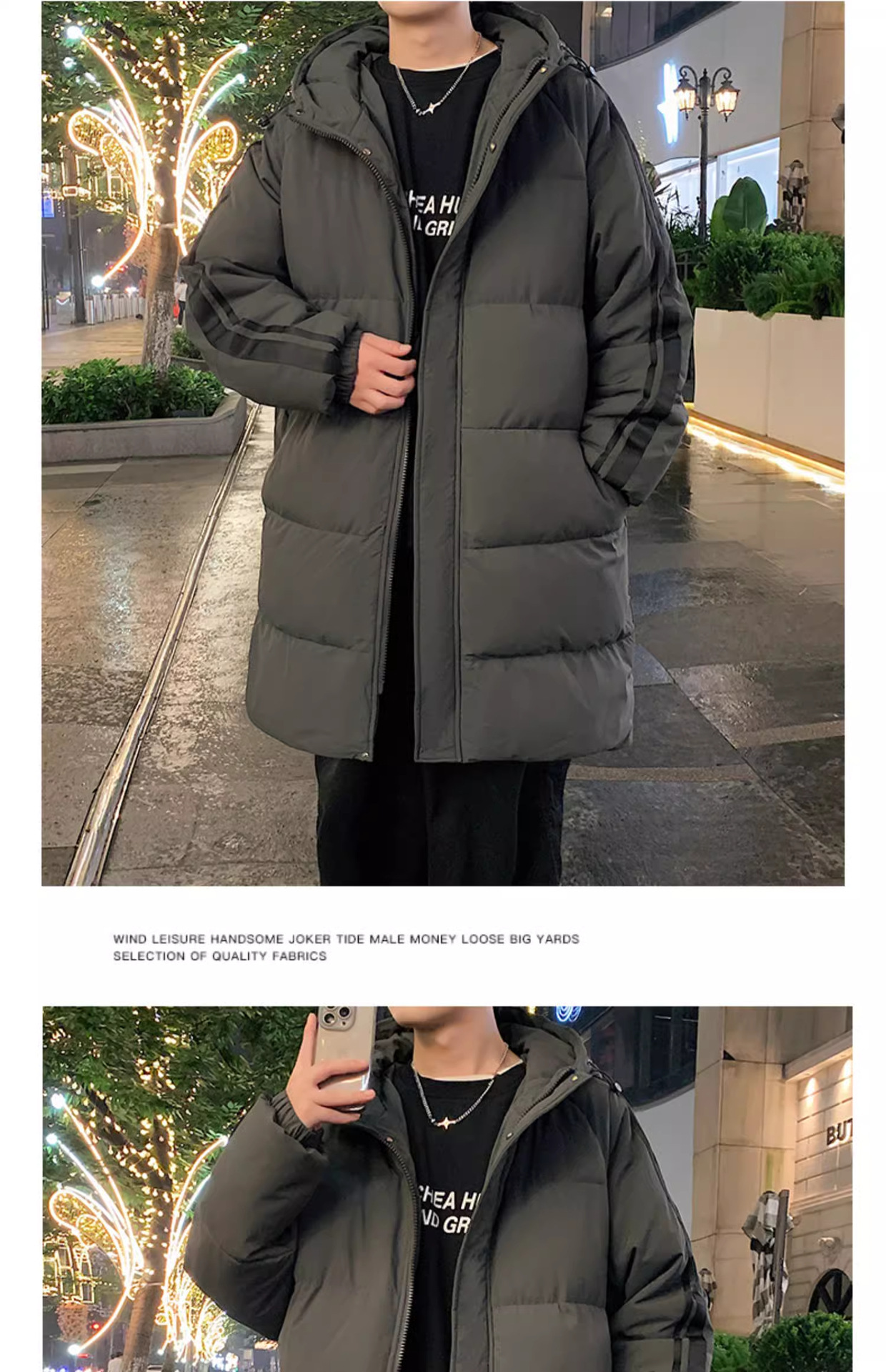 NASA 중간 길이의 후드 다운 코튼 패딩 재킷 남자 겨울 새로운 패션 브랜드 스트라이프 두꺼운 코튼 코트 코트 코트 코트 코트 코트스토어 가기