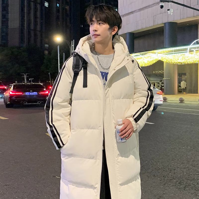 NASA 중간 길이의 후드 다운 코튼 패딩 재킷 남자 겨울 새로운 패션 브랜드 스트라이프 두꺼운 코튼 코트 코트 코트 코트 코트 코트