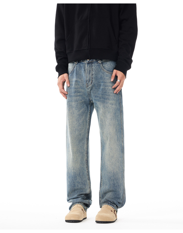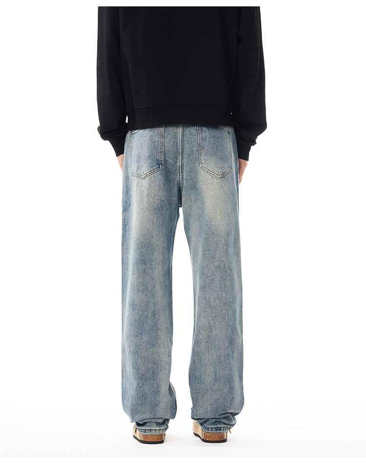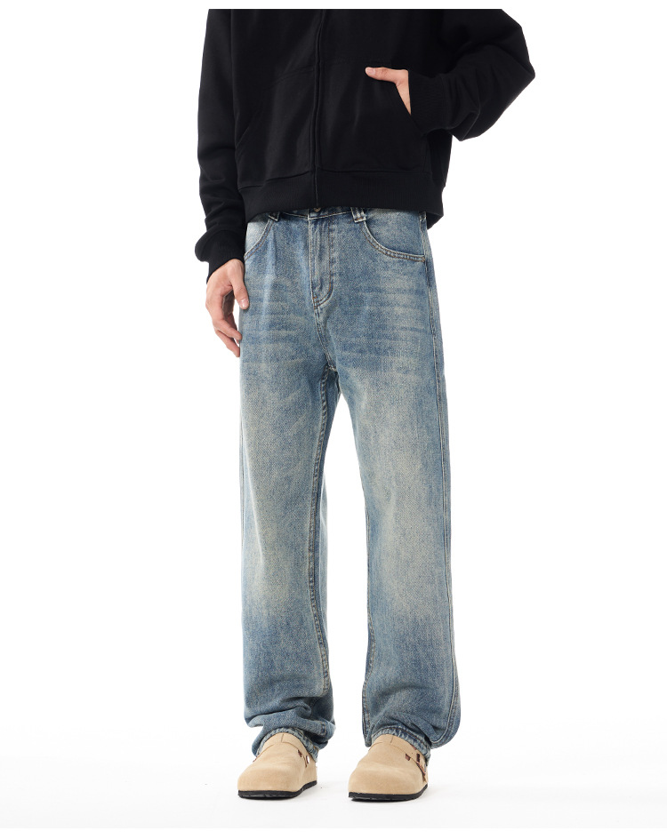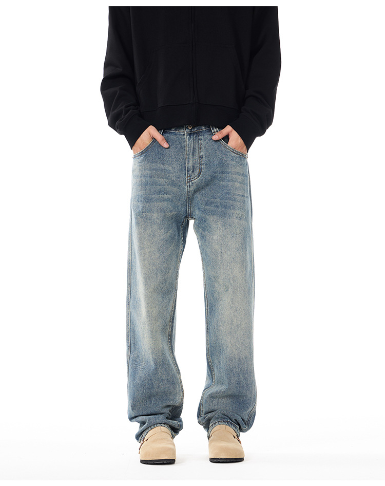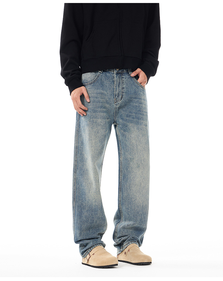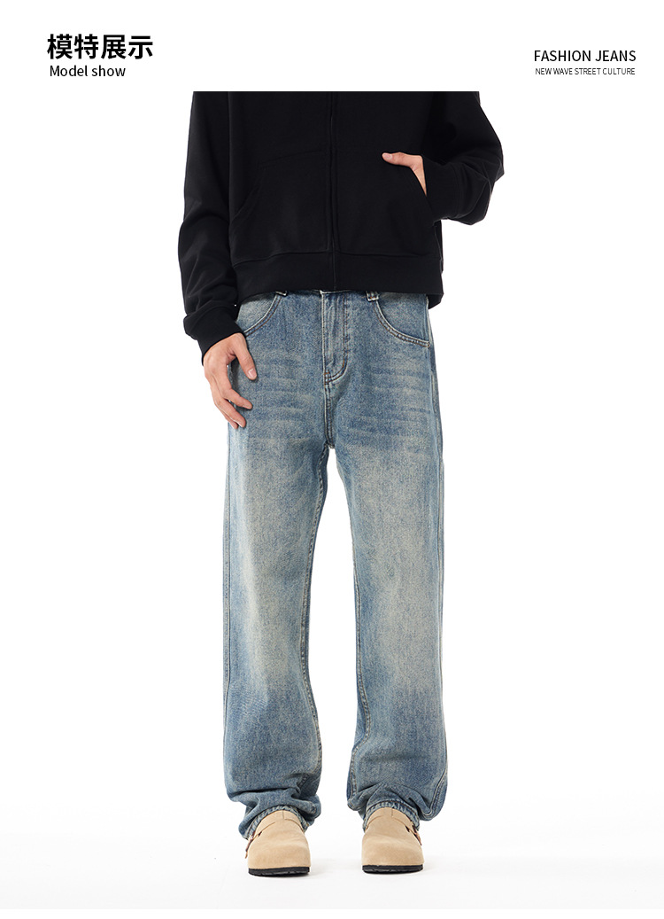 Muqiu 남성복 2024 가을/겨울 새 플러스 사이즈 씻은 레트로 청바지 남성용 느슨한 스트레이트 캐주얼 바지