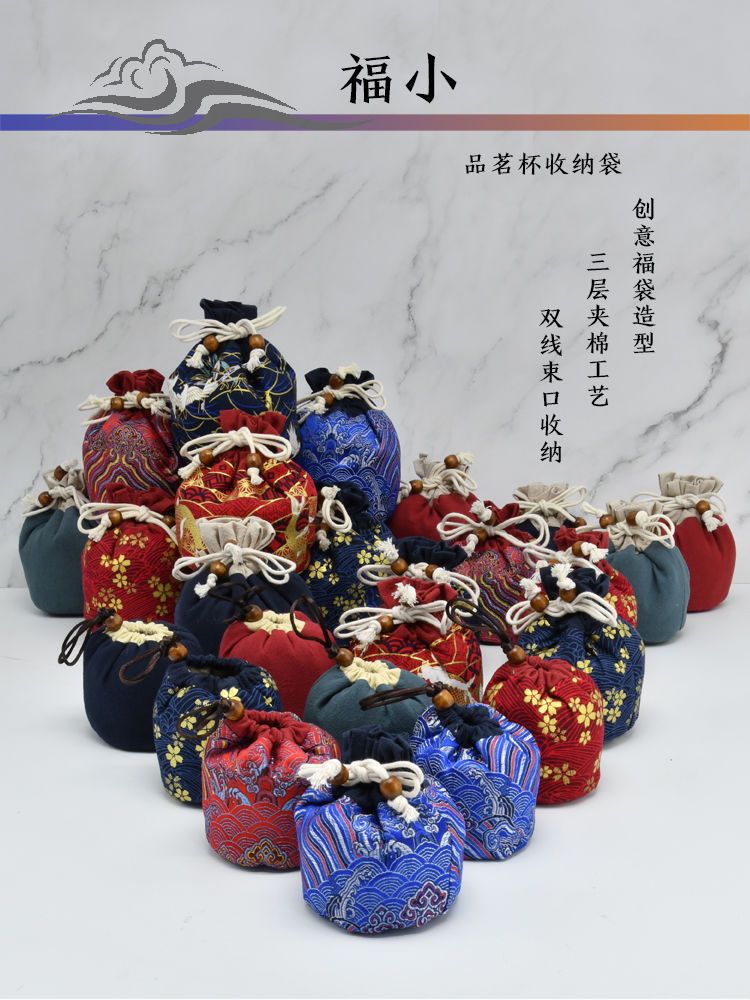 시음 컵 보관 가방 중국 스타일 빈티지 두꺼운 더블 레이어 싱글 컵 헝겊 가방 가벼운 번들 포켓 컵 여행스토어 가기