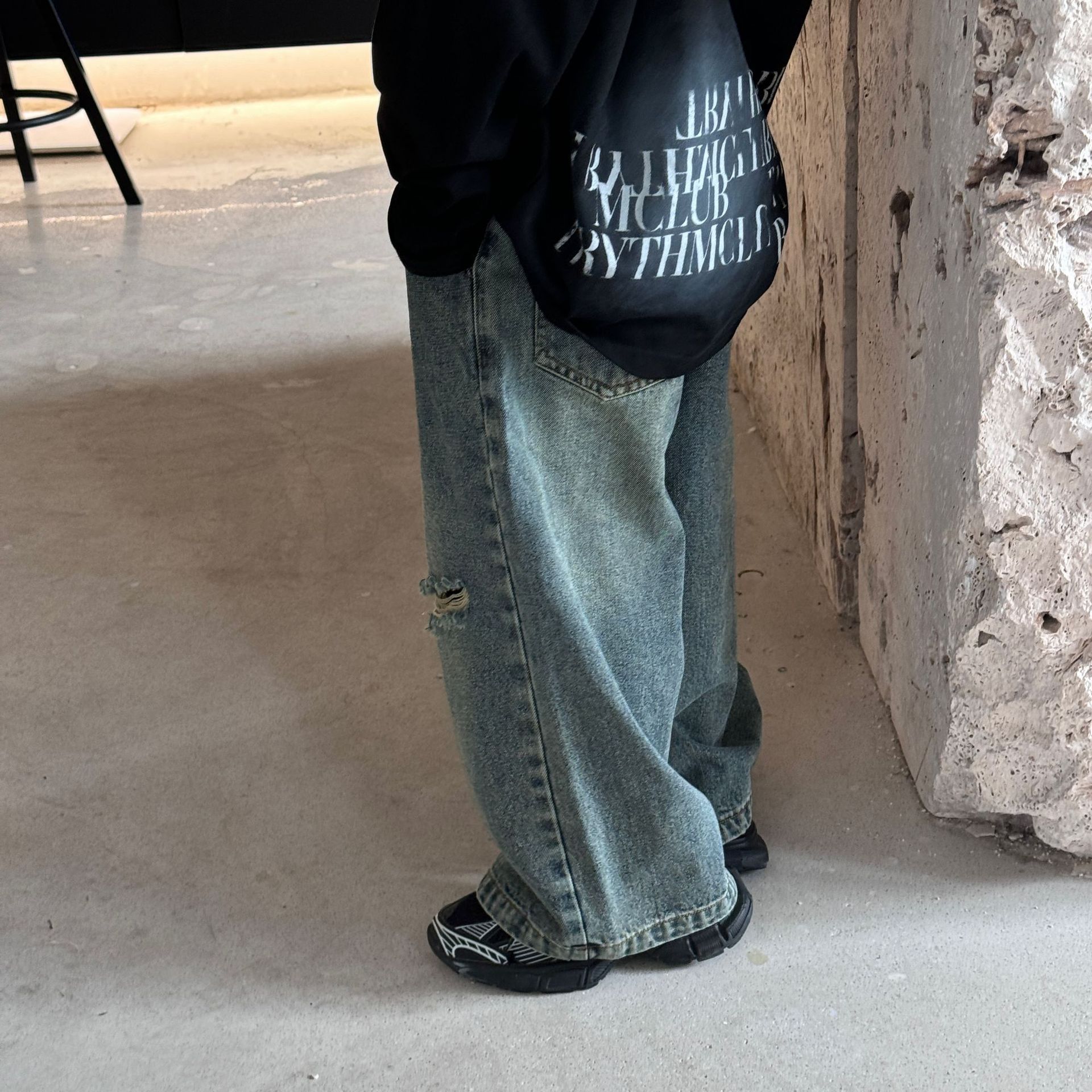 2025년 봄 신상 아동 바지 남아 여아 와이드 팬츠 청바지 긴바지 중학생 바지 끝부분 찢어진 트렌디하고 멋진 디자인스토어 가기